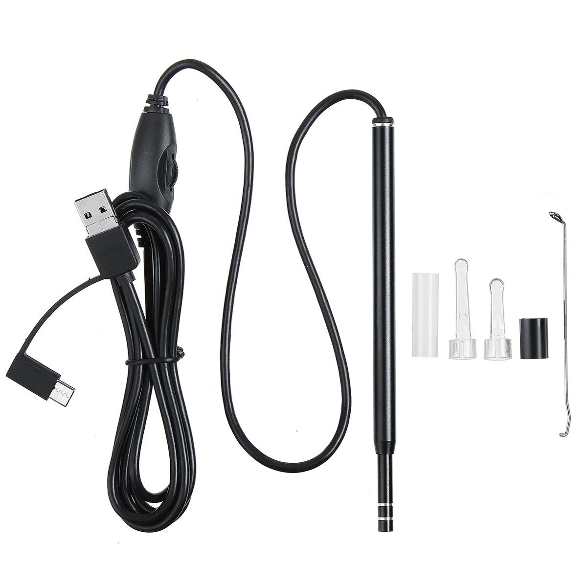 Package Included:1 * Visual Otoscope1 * Charging Cable1 * User Manual2 * Plastic ear pick1 * Metal ear pick1 * Fixed sleeve1 * Protective caseSpecification:Lens Diameter: 5. 5mmResolution: 640x480Focal length: 1.5cmSensor Size: 1/5 inchFrame Rate: 30fpsView Angle: 67 DegreePower Supply: 5V DC via USBSupport system: for Android /Windows/Type-CPhoto Format: JPEGVideo Format: AVICable length: 2 metersFeature:1.Support Android / PC system, flexible semi-rigid cable, can be bent to maintain its shape, not only can enter the closed place for ear wax cleaning2.1 megapixel HD with HD camera for close-up HD video and images, photo/video files will be stored directly on your Android phone3.Six unique adjustable LED lights, combined with a 5.5mm HD camera, greatly help improve image brightness and clarity in dark environments.4.With this otoscope , you can view live video of your ear and safely remove earwax. You can save photos and videos and send them to your healthcare professional5.A convenient and practical household tool that helps you easily check body parts such as the ear canal, scalp, pores, come, mouth, nose and more. Keeps you and your family in a clean physical condition.
