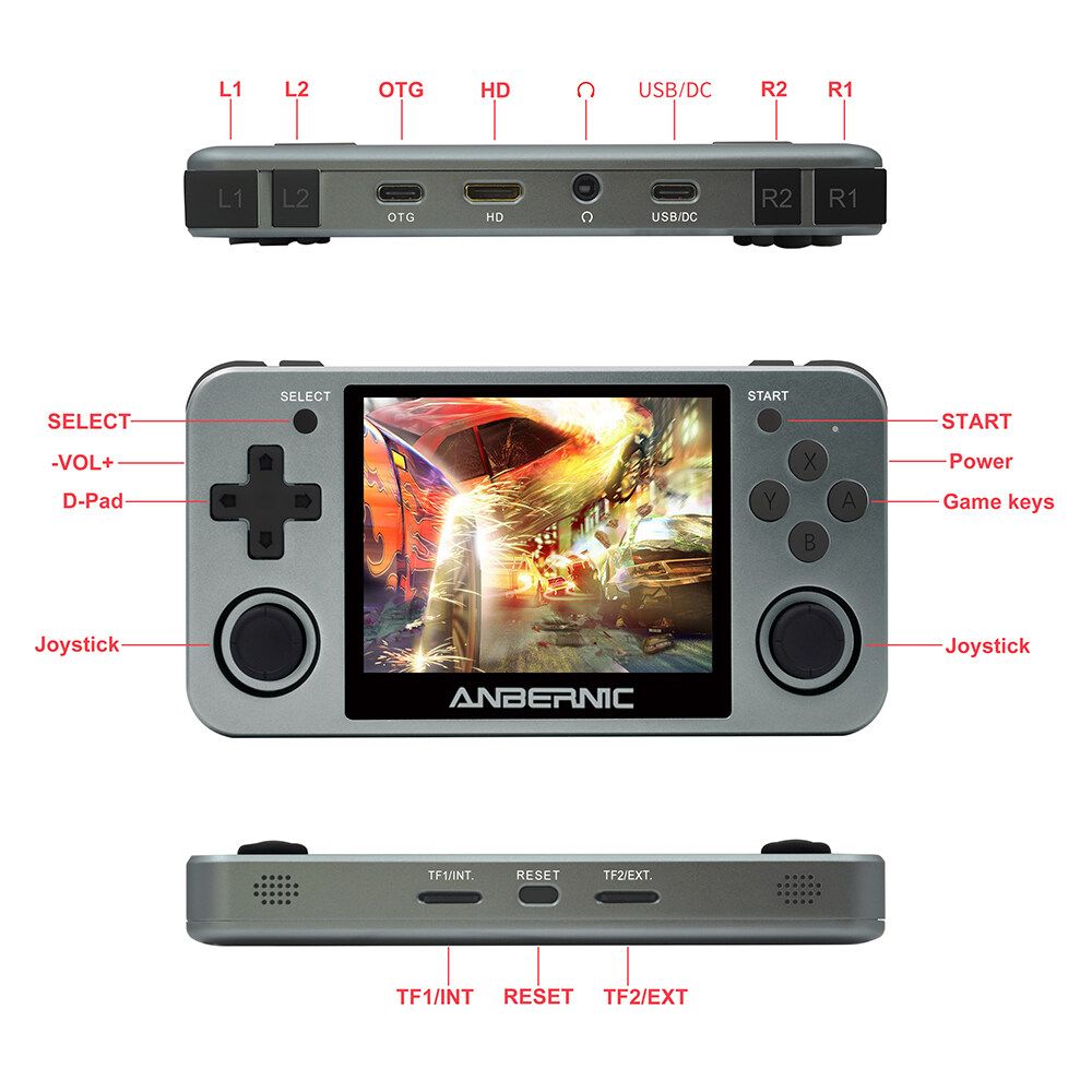 ANBERNIC RG350M 3.5 inch IPS Screen 64Bit DDR2 512M 16GB 3000+ Games Retro Handheld Video Game Console Player for PS1 GBA FC MD