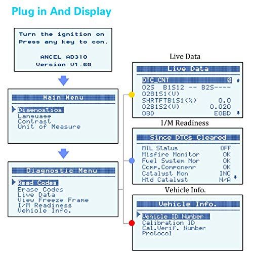Details: ANCEL AD310 is a great upgrade from more basi diagnosti ode readers. The major funtion of sanner is deteting the Engine System, reading and erasing error odes. One plugged into your vehiles 16pin OBDII DLC, the unit will power up and prompt you to start your ignition. If your vehile has a Chek Engine Light on, AD310 is the first tool you need to have to help you determine the ause and find a solution. ANCEL BA201 ar battery tester adopts the state-of-the-art ondutane testing tehnology to measure the atual old ranking amps apability of starting battery, battery healthy state, and ommon fault of starting system and harging system quikly and aurately.