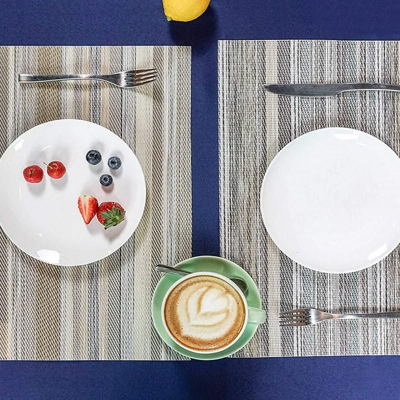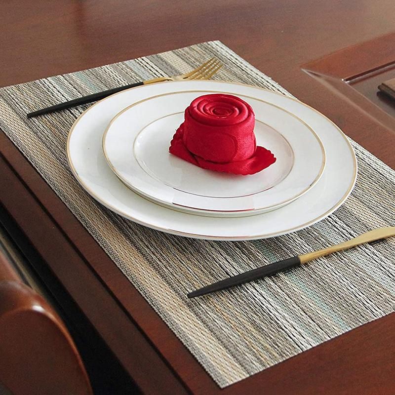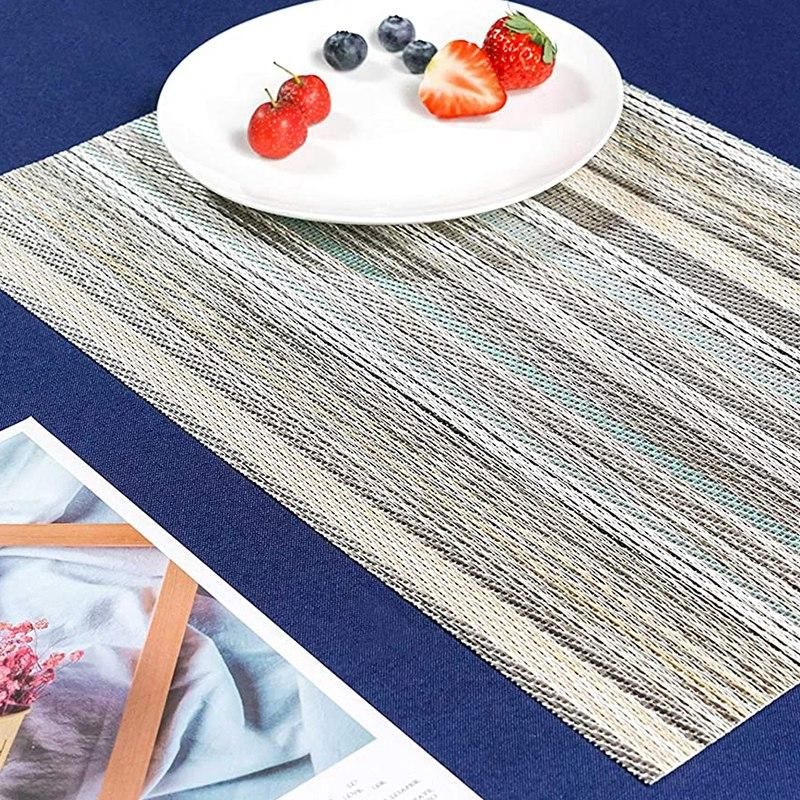 Placemats Material: Made of high quality environmentally PVC, this stain-resistant placemat is durable, stain resistant, heat proof, insulated, foldable and washable.