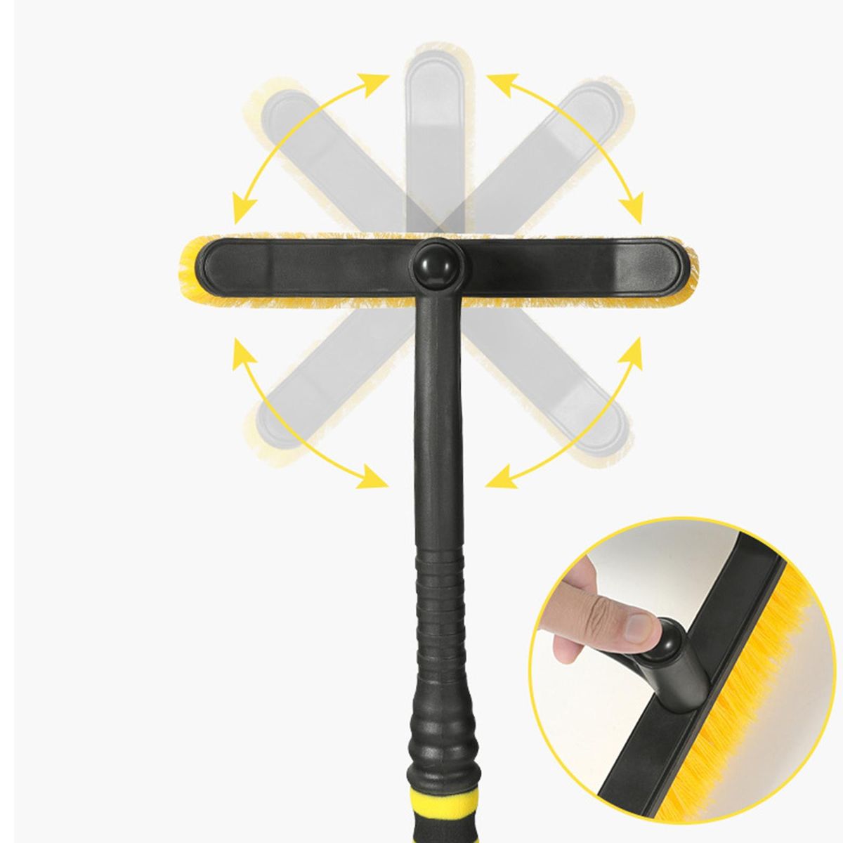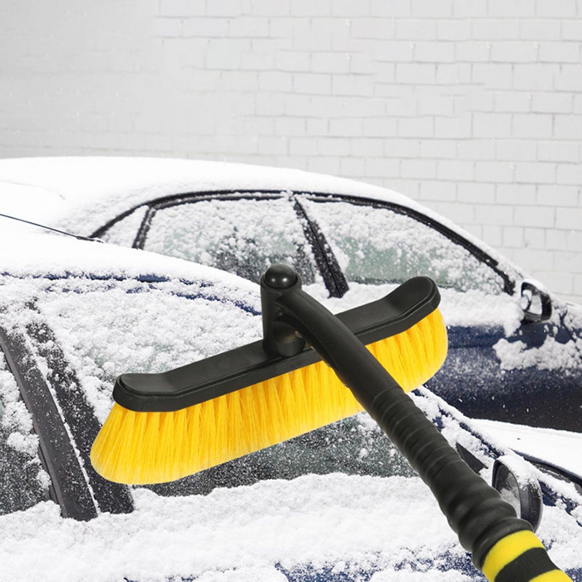 【Adjustable angle】: 2 in 1 Ice Scraper Snow Brush, rotation adjustment. Press the button to adjust the plush angle at different angles, which can sweep or push snow