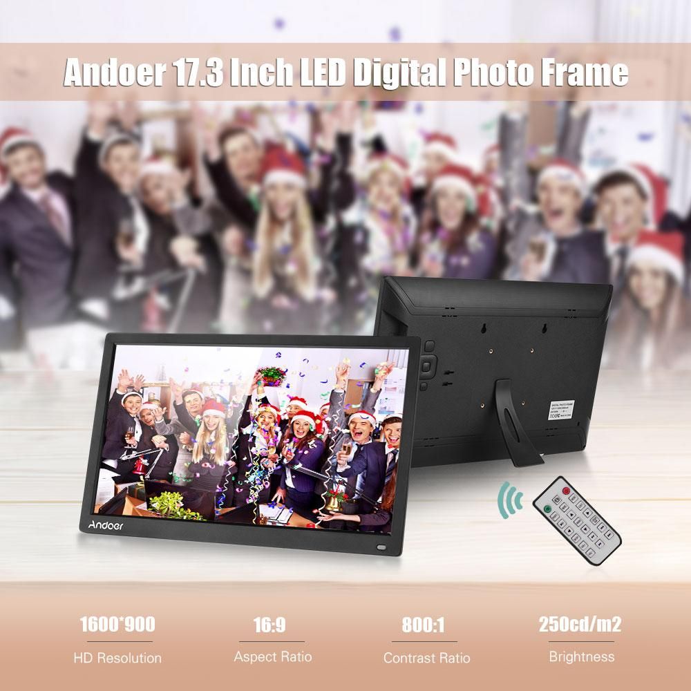 Buy Andoer 17.3 Inch Desktop Digital Photo Picture Frame Album 1600*900 Resolution 16:9 TN LED Display Screen Support Calendar Clock Time Setting MP3 Music Movie with IR Remote Control Stand Bracket Support SD Card As Gift Present for Family Friends in Nigeria