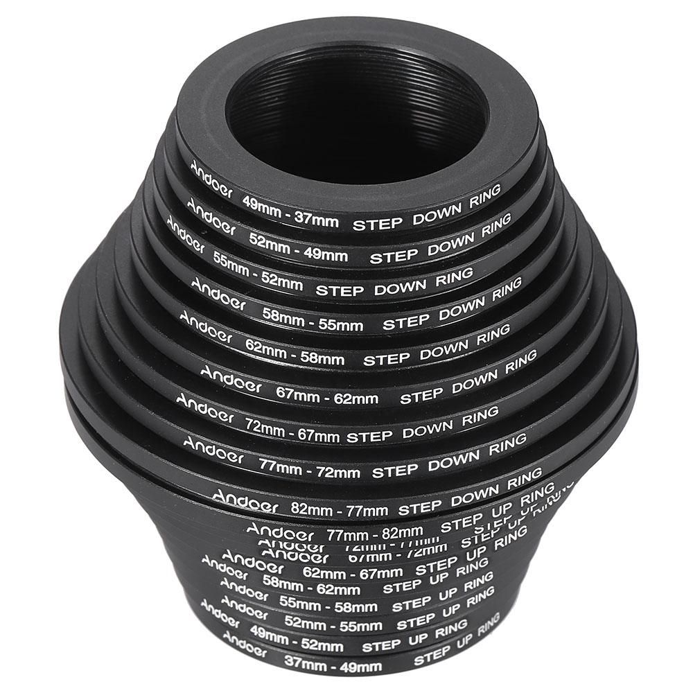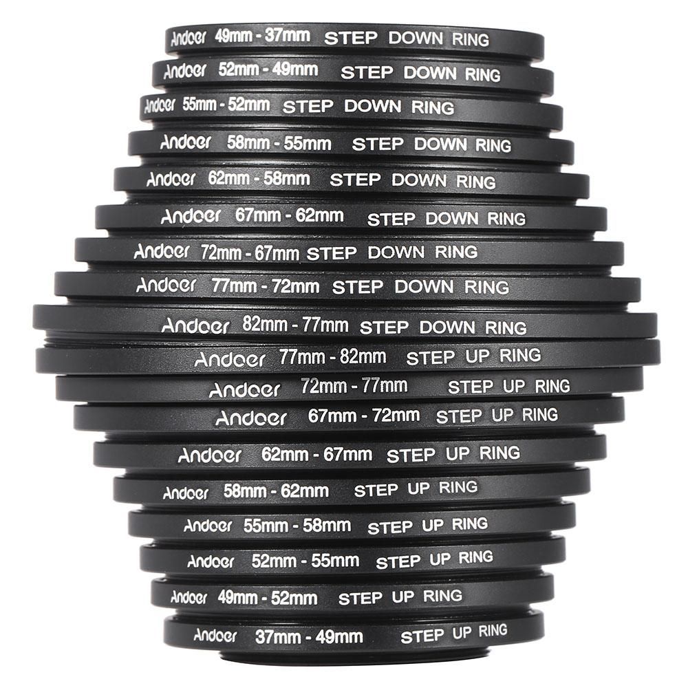 Buy Andoer 18pcs 37-49-52-55-58-62-67-72-77-82mm Step Up / Step Down Lens Filter Metal Adapter Ring Kit in Nigeria