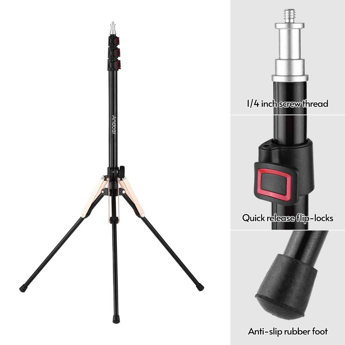Buy Andoer 190cm/74.8 Inch Portable Aluminum Alloy Photography Light Stand Reverse Folding Leg Stand 3-Section Flip Locks Design with 1/4 Inch Screw Thread for Ring Light Softbox Flash Light Reflector in Nigeria