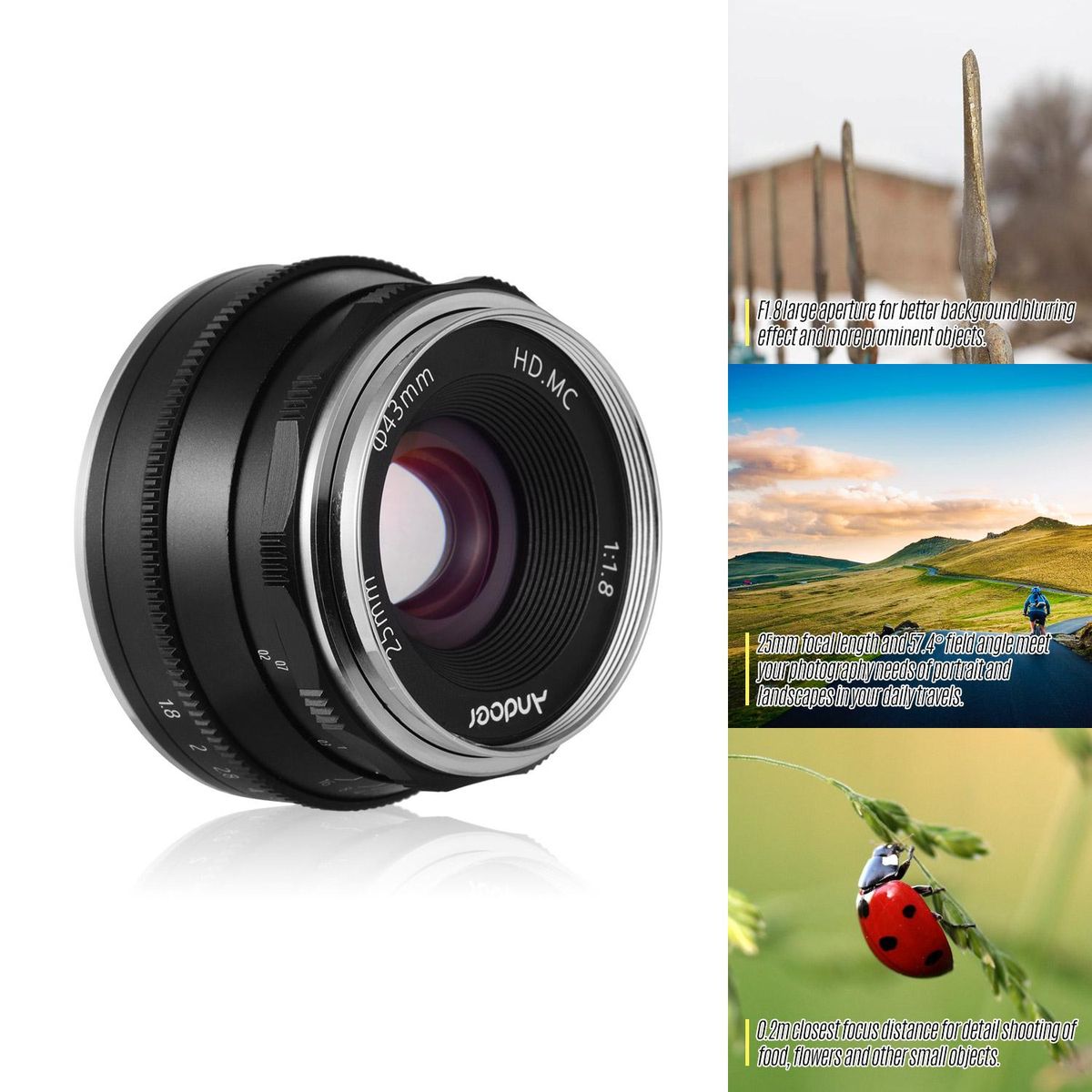 Buy Andoer 25mm F1.8 Manual Focus Lens Large Aperture Compatible with Canon M1/ M2/ M3/ M5/ M6/ M10/ M100/ M50 EOS M-Mount in Nigeria