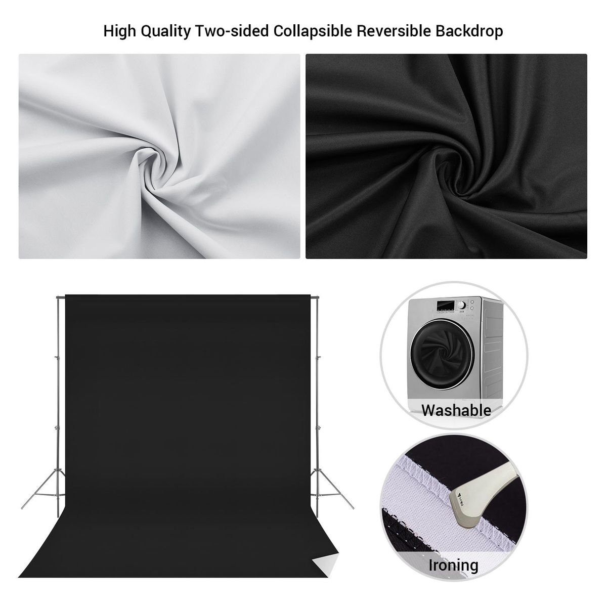 Buy Andoer 3.6 * 3 Meters/ 11.8 * 10 Feet Bi-Color Photography Backdrop Background Screen Washable Polyester-Cotton for Studio Photo Video with 3pcs Backdrop Clamps, Black & White 2-in-1 in Nigeria