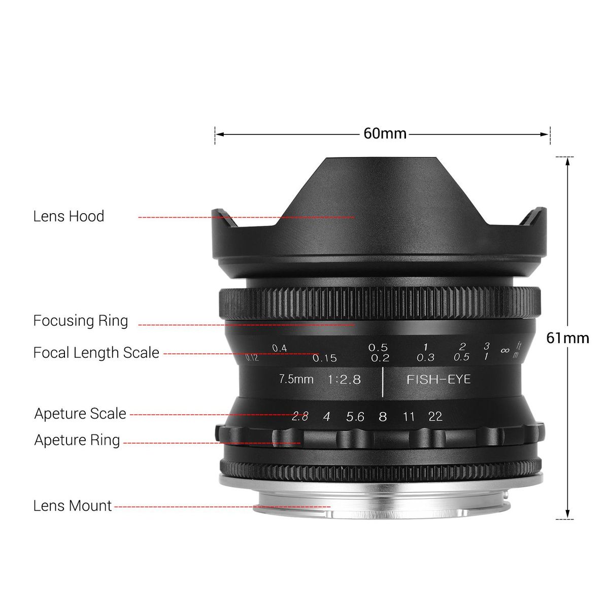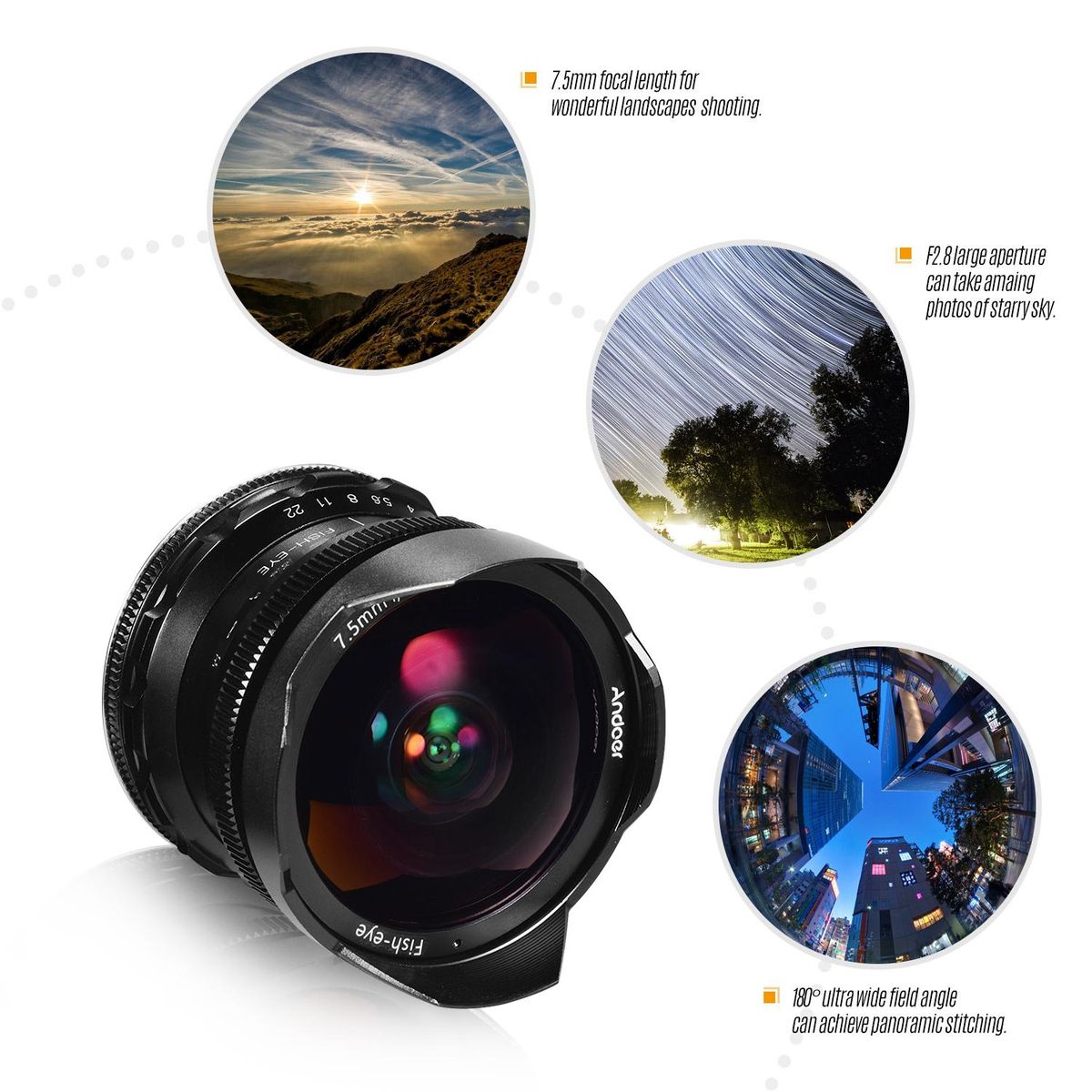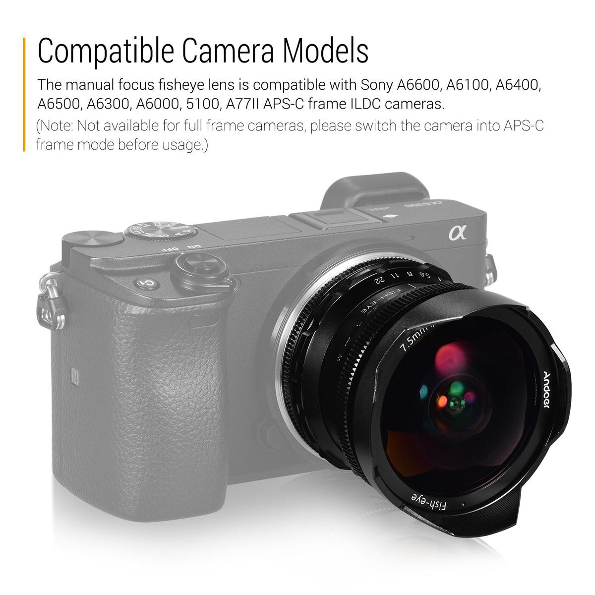 Buy Andoer 7.5mm F2.8 Manual Focus Fisheye Lens 180° Ultra Wide Angle Large Aperture E-Mount Lens Compatible with Sony APS-C Frame ILDC Camera A6600 A6100 A6400 A6500 A6300 A6000 5100 A77II in Nigeria