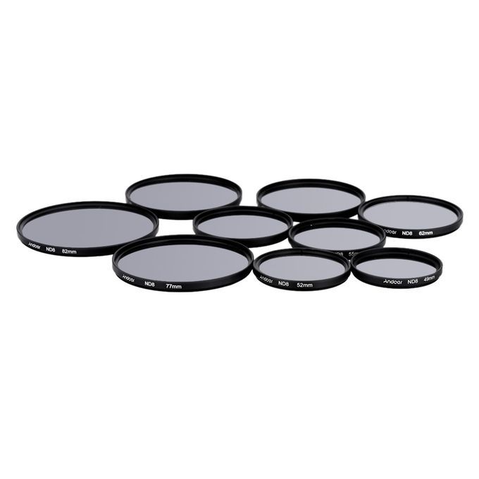 ND8 Filter: Apply slow shutter speed under strong sunlight exposure, large aperture is available to create depth of field easily; The number indicates the fraction by which light is reduced; ND8 cuts the light entering the lens by 1/8.