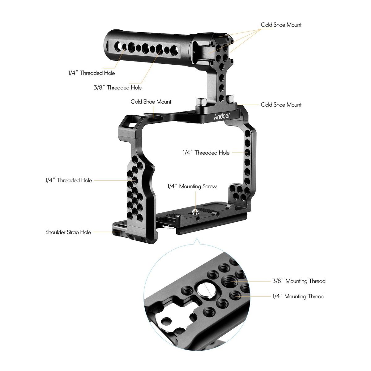 Buy Andoer Aluminum Alloy Camera Cage Kit with Video Rig Top Handle Grip Replacement for Sony A7R III/ A7 II/ A7III in Nigeria
