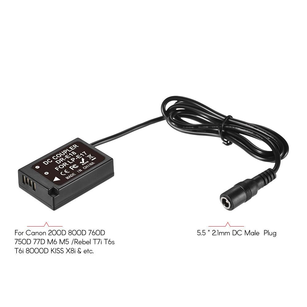 Buy Andoer DR-E18 LP-E17 Dummy Battery Pack Coupler Adapter with DC Male Connector for Canon 200D/ 800D/ 760D/ 750D/ 77D/ M6/ M5 /Rebel T7i T6s T6i 8000D KISS X8i/ SL3/250D/Kiss X10 in Nigeria