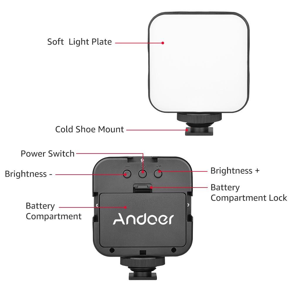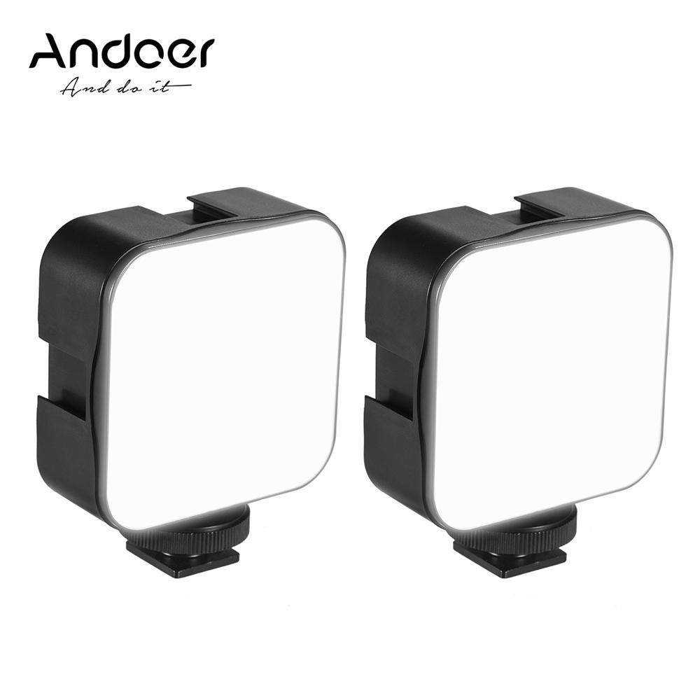 Buy Andoer Mini LED Video Light Photography Fill-in Lamp 6500K Dimmable 5W with Cold Shoe Mount Adapter Compatible with Canon Nikon Sony DSLR Camera, Pack of 2pcs in Nigeria