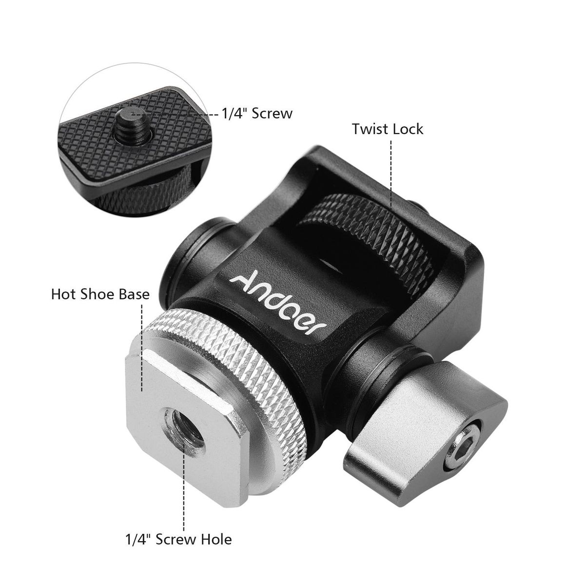 Buy Andoer Mini Monitor Mount Tripod Head Cold Shoe Adapter Aluminum Alloy 1/4 Inch Screw for Mounting Camera Monitor Flash Microphone LED Fill Light in Nigeria