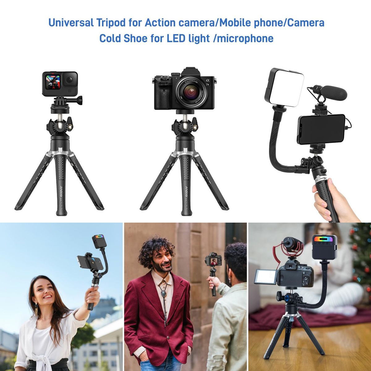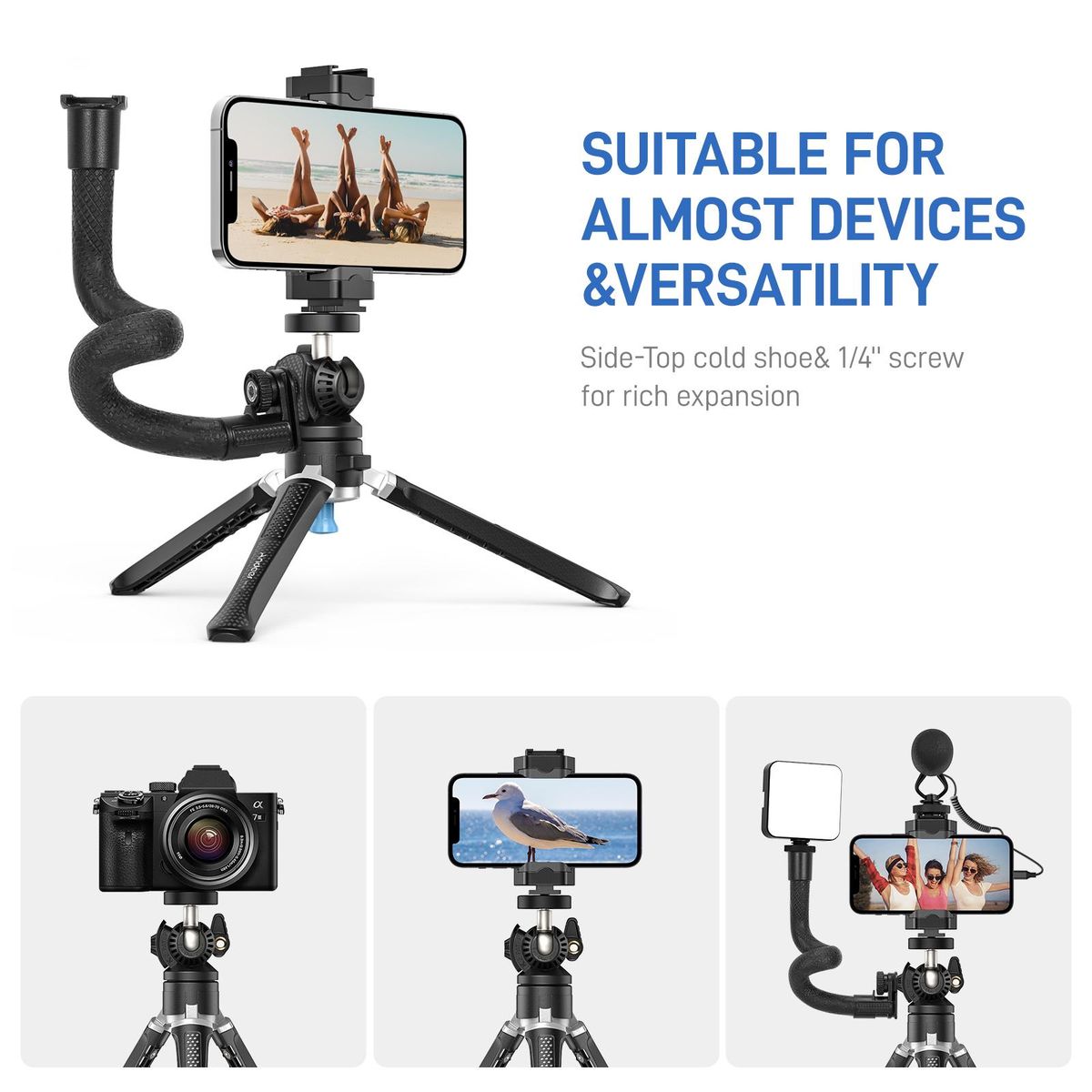 Buy Andoer MT-01 Desktop Tripod Stand 2 Levels Adjustable Height 360° Rotatable Ball Head with Phone Holder Flexible Extension Arm Max. 5kg Load Capacity for Vlog Live Streaming Online Teaching Video Conference in Nigeria