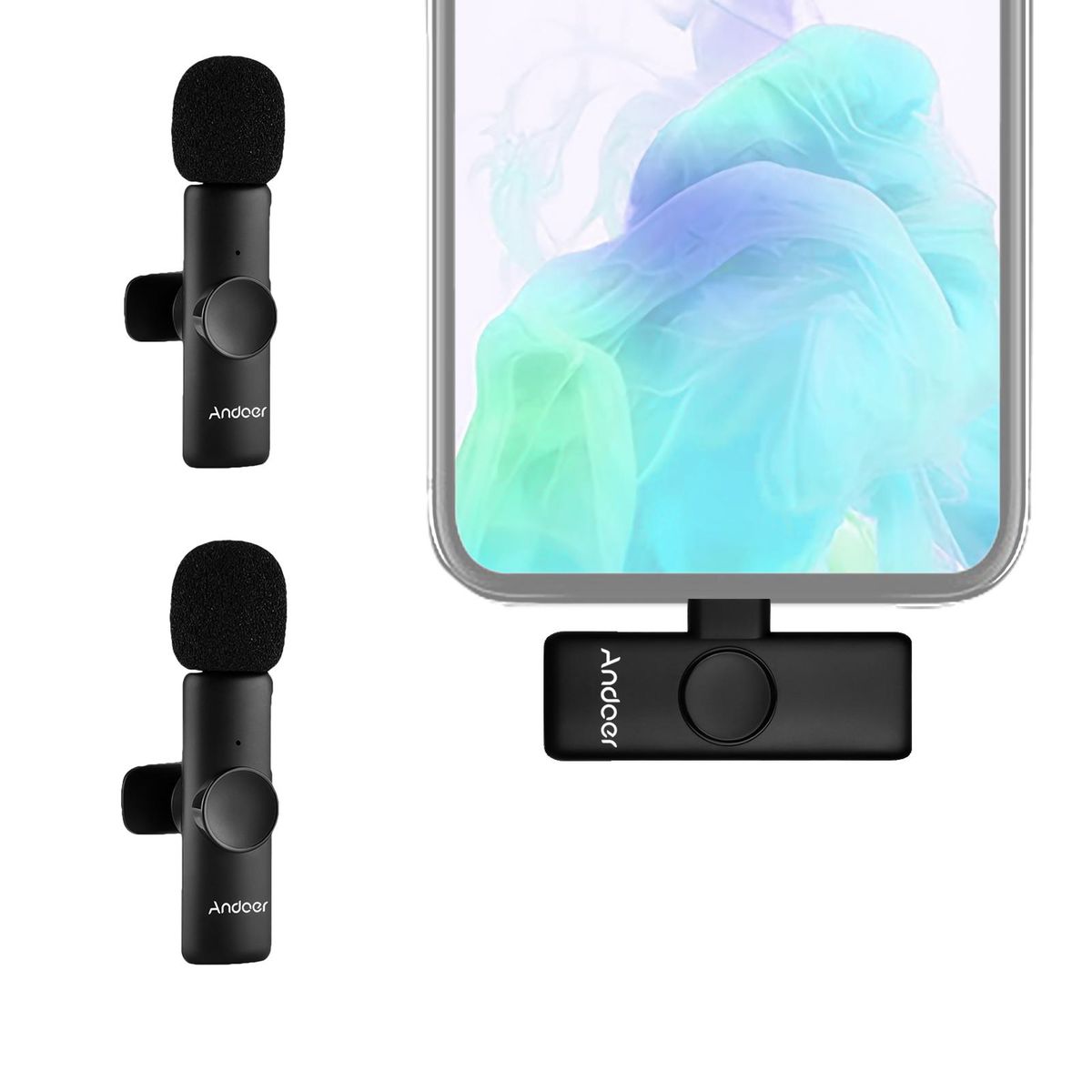 Buy Andoer One-Trigger-Two Mini 2.4G Wireless Microphone System(2 Transmitters + 1 Receiver) Clip-on Mic 20M Transmission Range Built-in Battery Plug-and-Play for Type-C Smartphones Tablets Vlog Live Streaming Interview in Nigeria