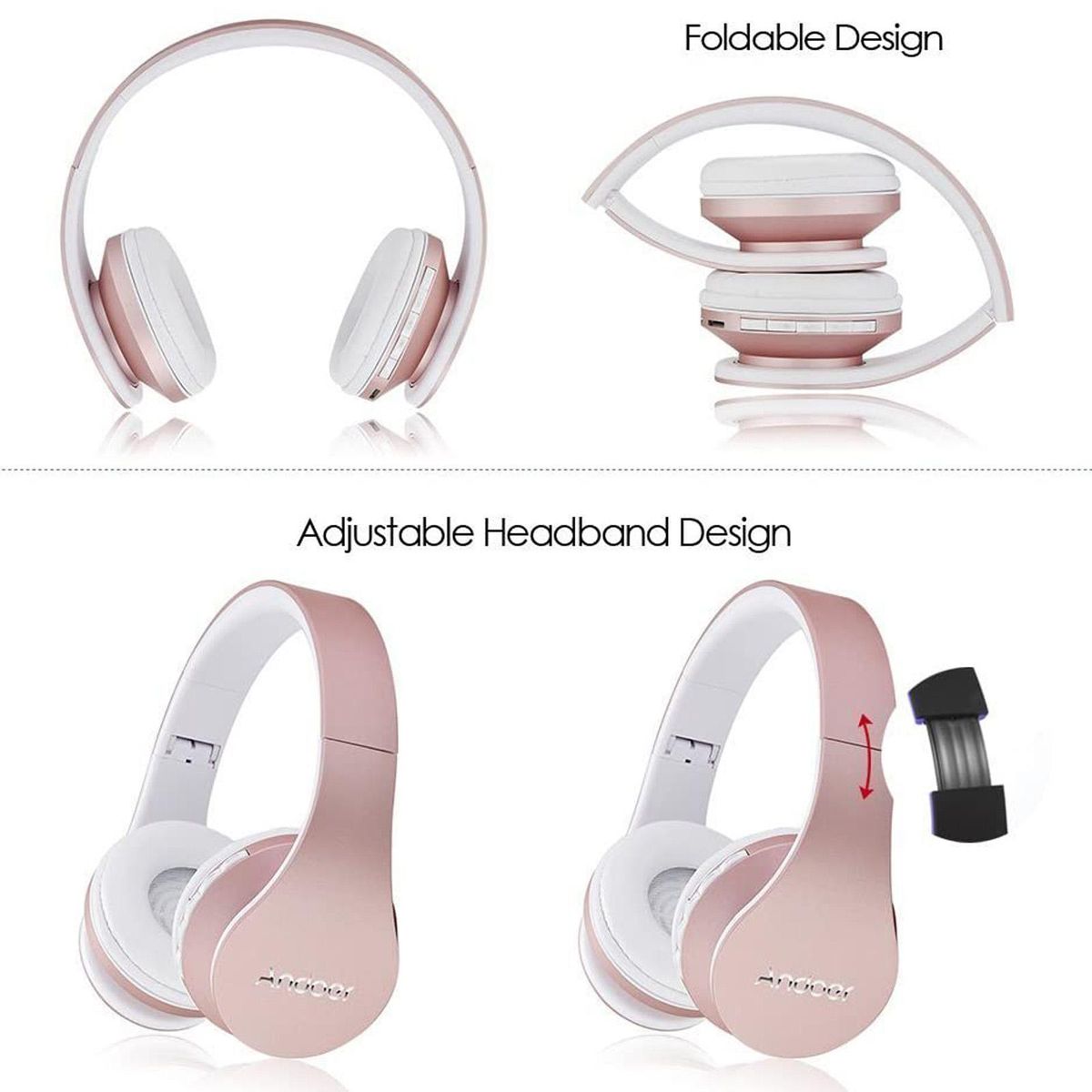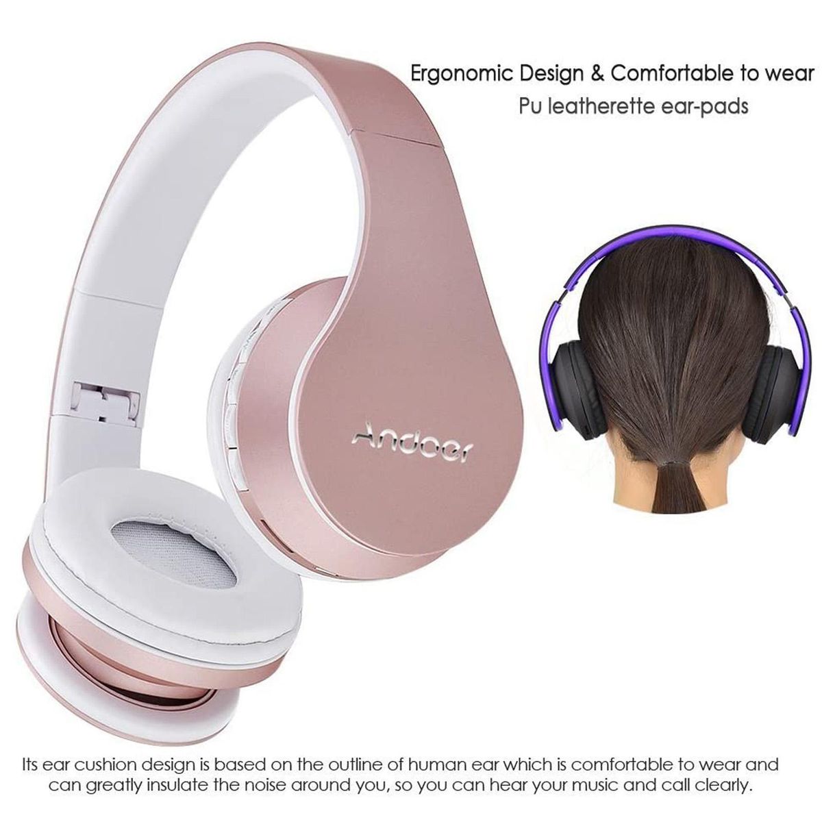 Buy Andoer Over Ear Wireless BT Headset with Microphone 3.5mm Wired Music Headphones Foldable Headband TF Card Slot FM Radio for Mobile Phone PC Laptop(Rose Gold) in Nigeria