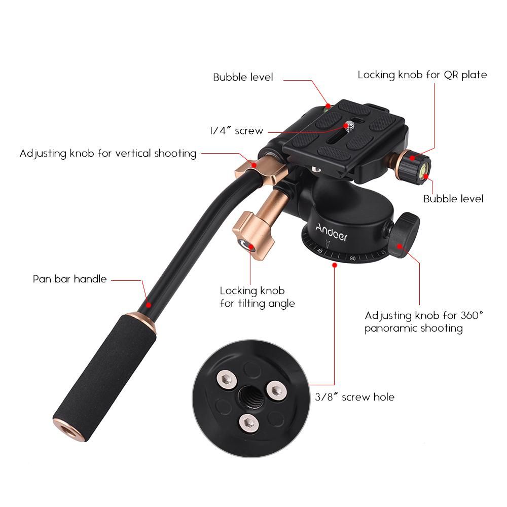 Buy Andoer Q08S Aluminum Alloy 3-Way Damping Video Head Tripod Head with Pan Bar Handle Support 360° Panoramic Shooting 1/4" Screw Mount 3/8" Screw Hole for DSLR ILDC Camera for Tripod Monopod Max. Load 6kg in Nigeria