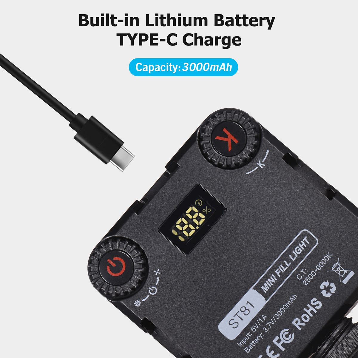 Built-in 3000mAh lithium battery that can be recharge via top type-C interface, long working time and quick charging.