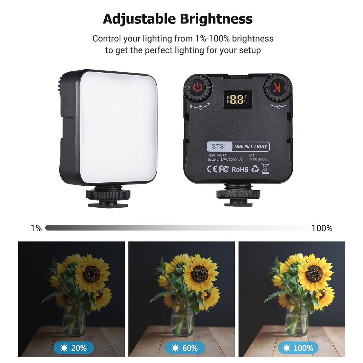 Designed with 3 cold shoe mounts, which allows you to interlock several lights to get better brightness.