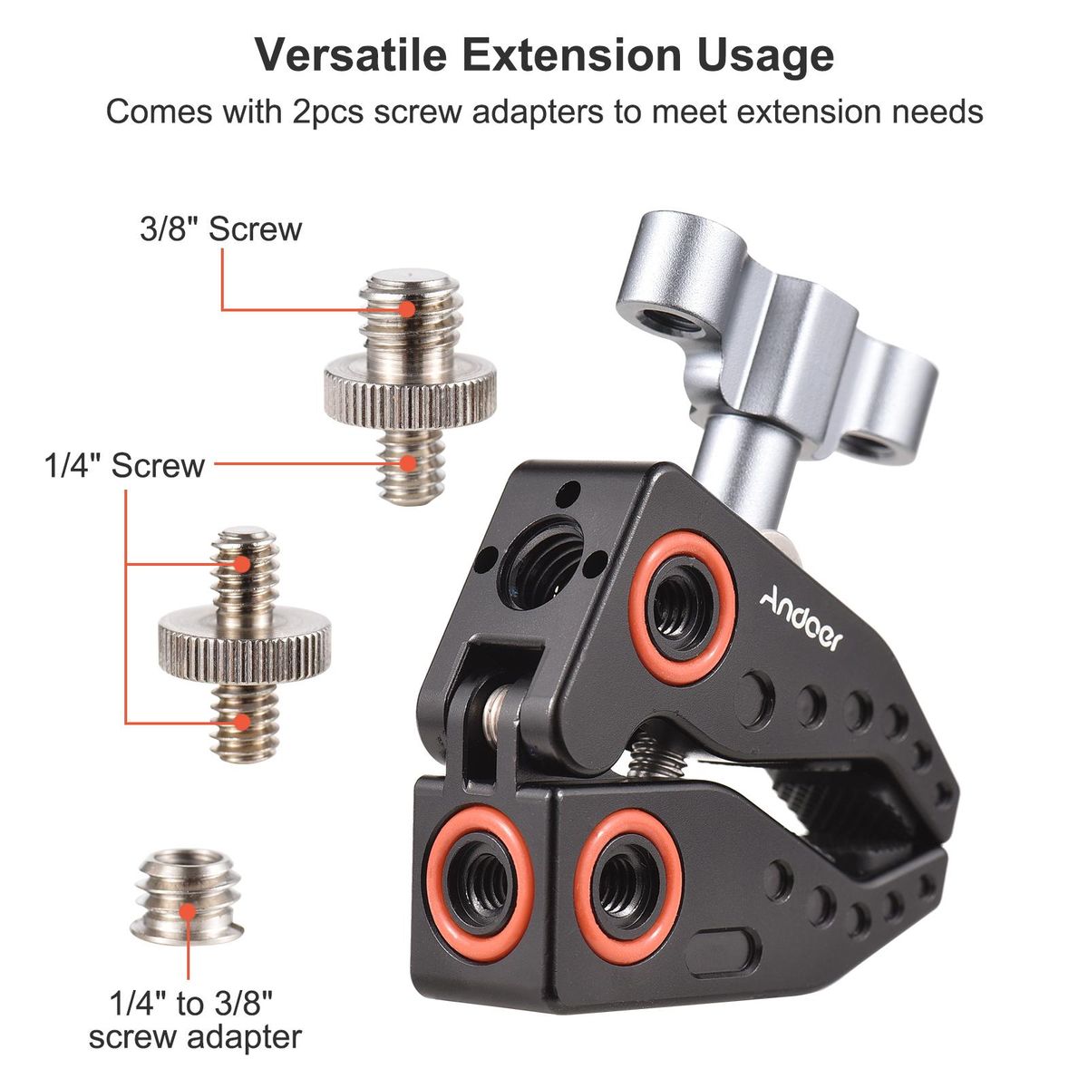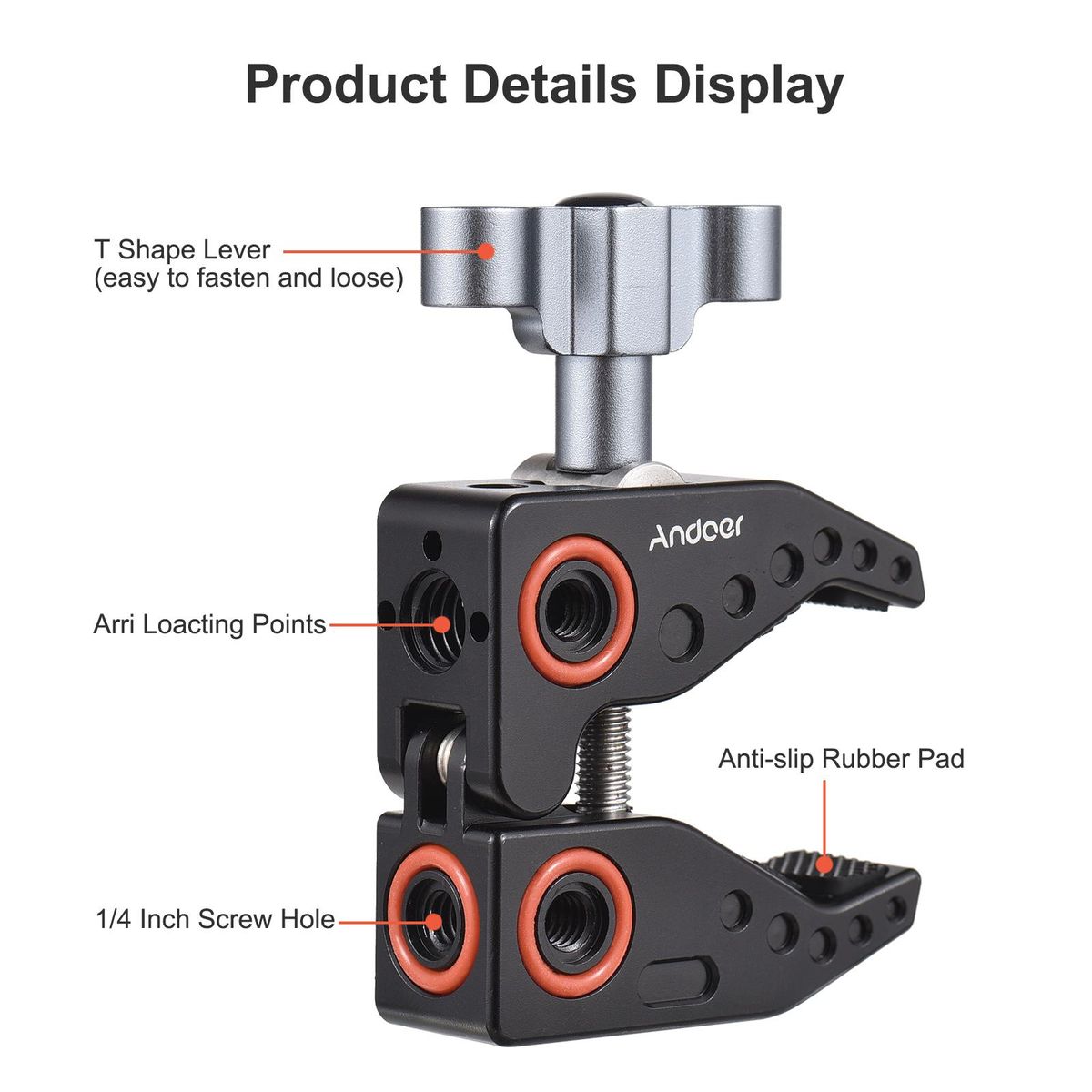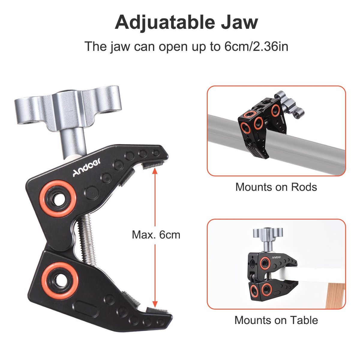 Buy Andoer Super Clamp for Monitor LED Lights Flash Microphone Aluminum Alloy C Clamp Camera Clamp with 1/4 Inch & 3/8 Inch Screws Photography Accessories 3kg Load Capacity in Nigeria