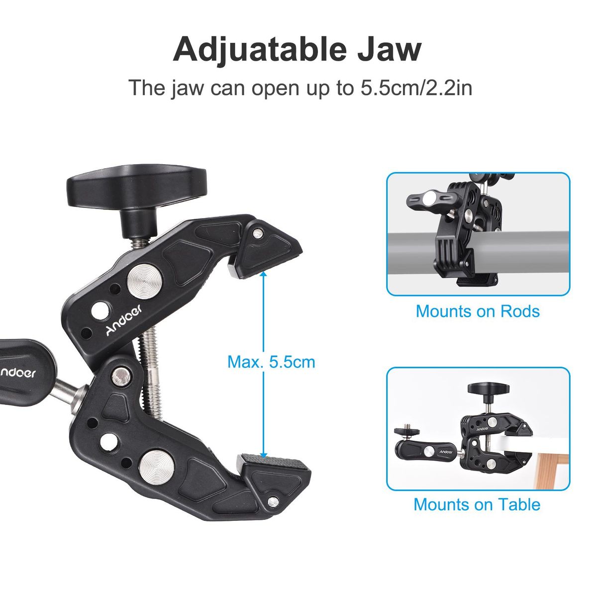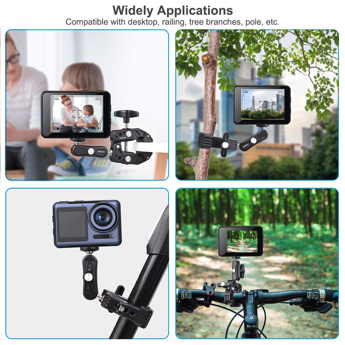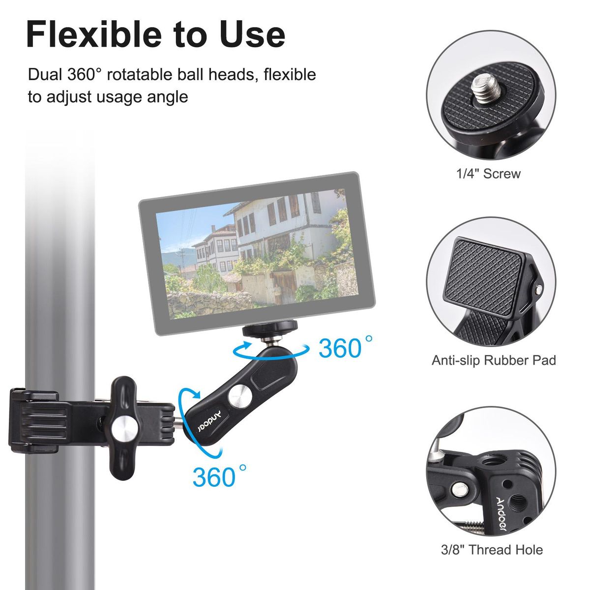 Buy Andoer Super Clamp Mount Camera Mount Flexible Monitor Mount with Dual 360° Rotatable Ball Head 1/4 Inch & 3/8 Inch Threads Replacement for GoPro Hero 11/10/9/8 DSLR Cameras Smartphone in Nigeria