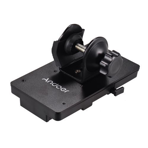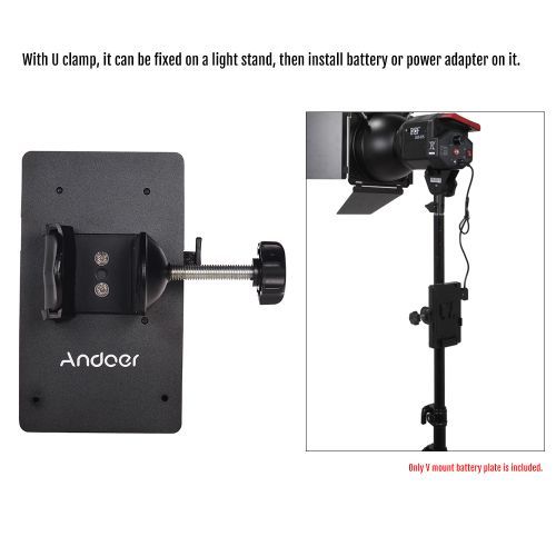 With U clamp, it can be fixed on a light stand, then install battery or adapter on it.