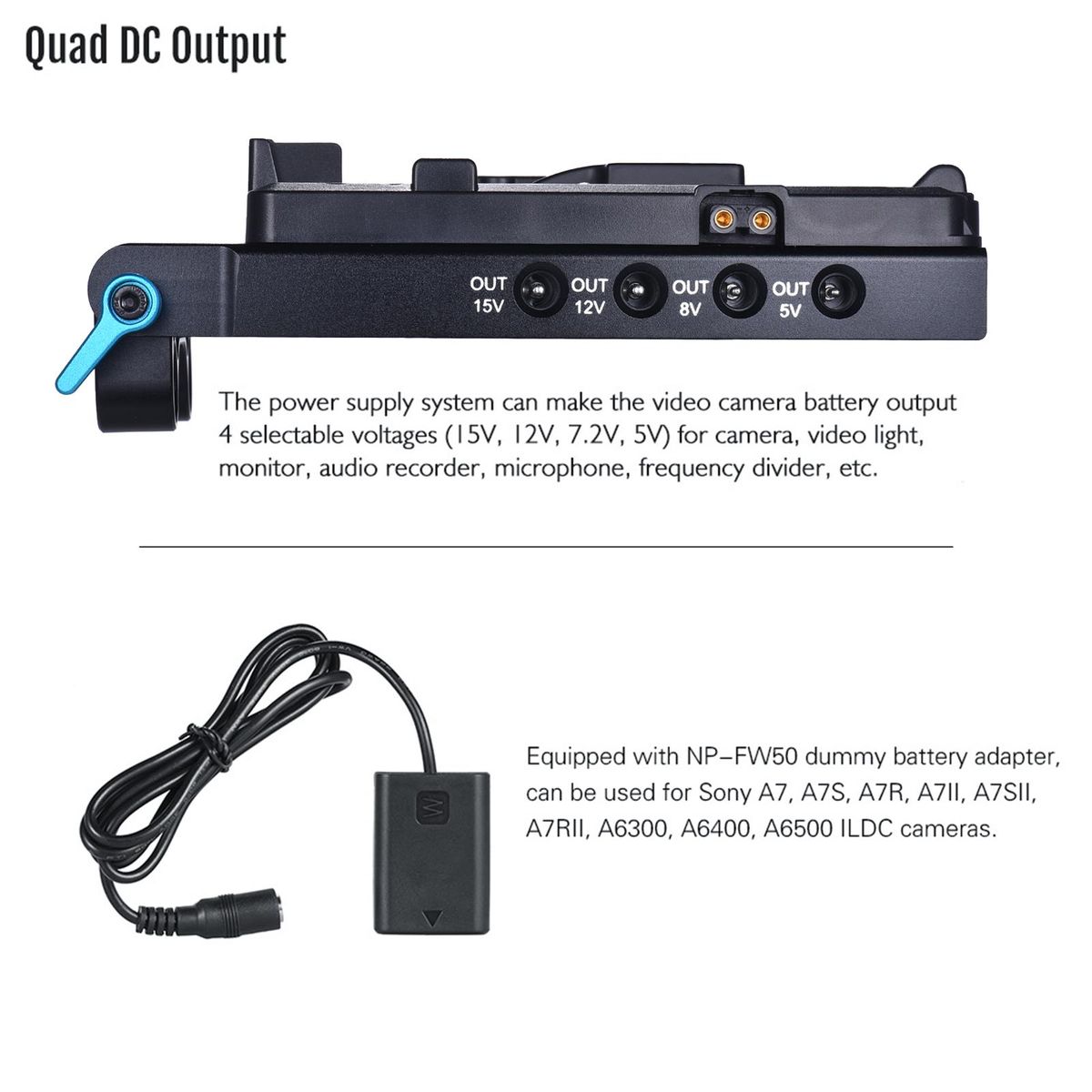Buy Andoer V Mount V-lock Battery Plate Adapter with 15mm Dual Hole Rod Clamp NP-FW50 Dummy Battery Adapter for BMCC BMPCC Sony A7 A7S A7R A7II A7SII A7RII A6300 A6400 A6500 for Monitor Audio Recorder Microphone Frequency Divider in Nigeria