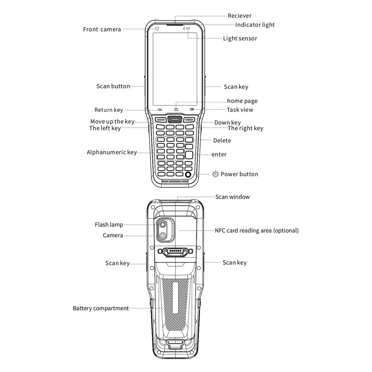【Endurance & Durable】 Built-in 5000mAh rechargeable Polymer battery, less than 3 hours is for over 12-hour working and up to 350hrs standby time. The PDA machine is premium material that cater to hard industrial environment. With IP66 water and 1.5m anti-falling capability, workers can still expect reliable performance if they drop it to the marble ground.