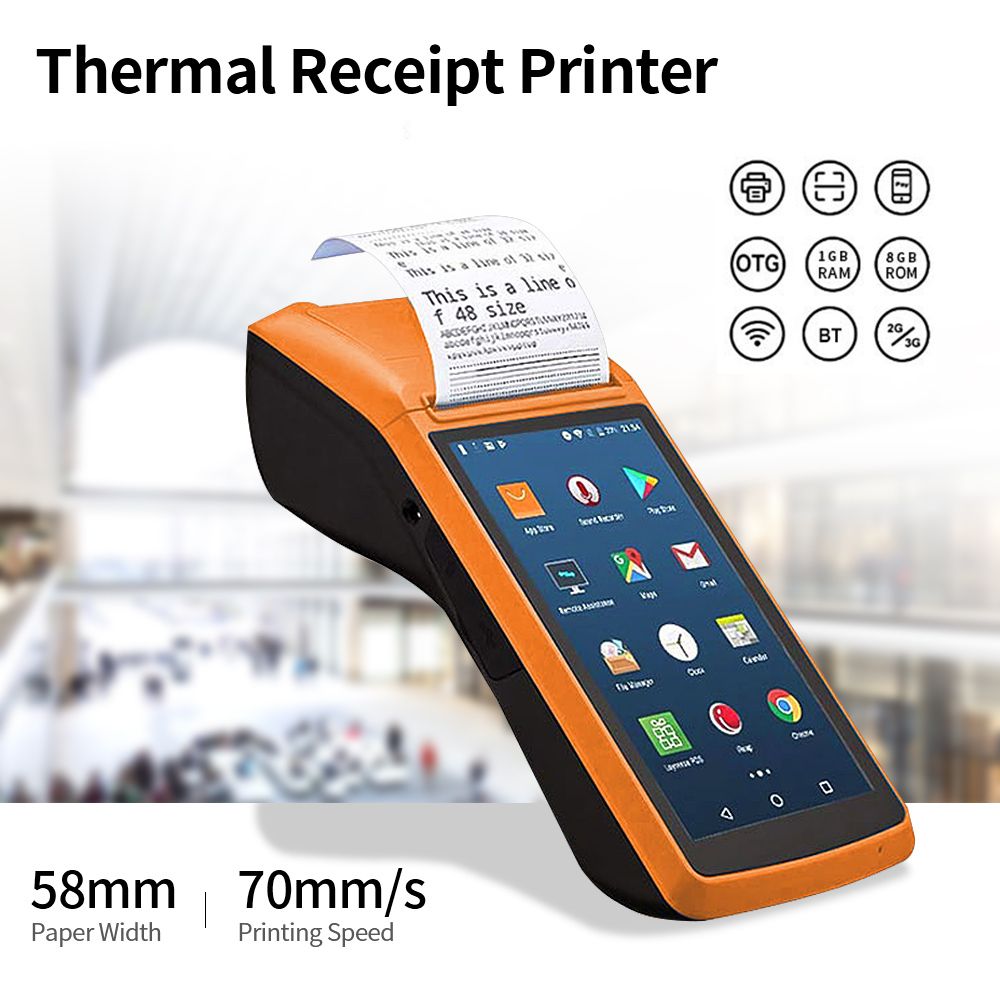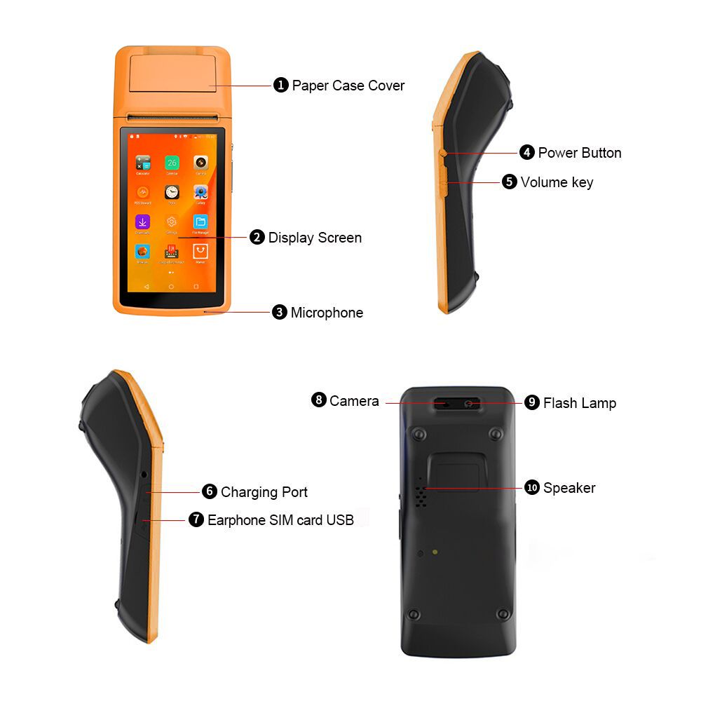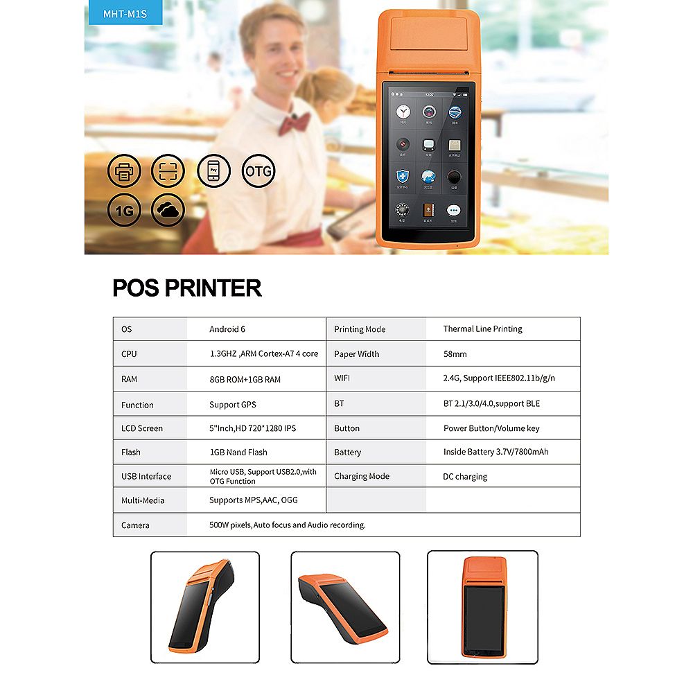This POS Thermal Receipt Printer enables you to place order, make mobile payment and print receipt and it supports connection through 3G/2G, 2.4G WiFi and BT. And you can also scan and read 1D or 2D bar codes with 5MP AF camera.