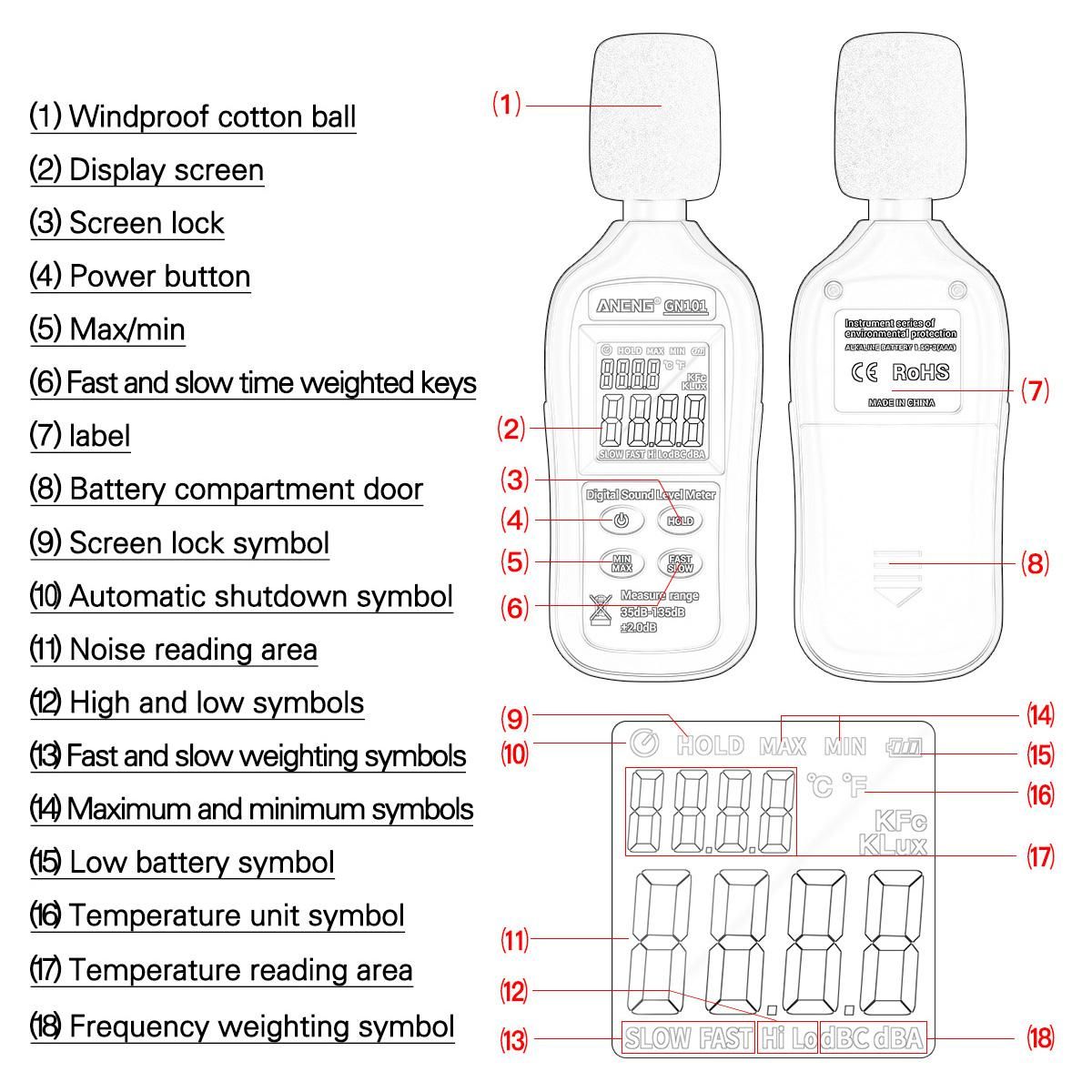 Buy ANENG Digital Noise Meter 35db-135db Decibel Meter LCD Display Sound Level Meter High-precision Sound Decibel Monitor Professional Noise Tester Household Noise Measuring Instrument with Condenser Microphone in Nigeria