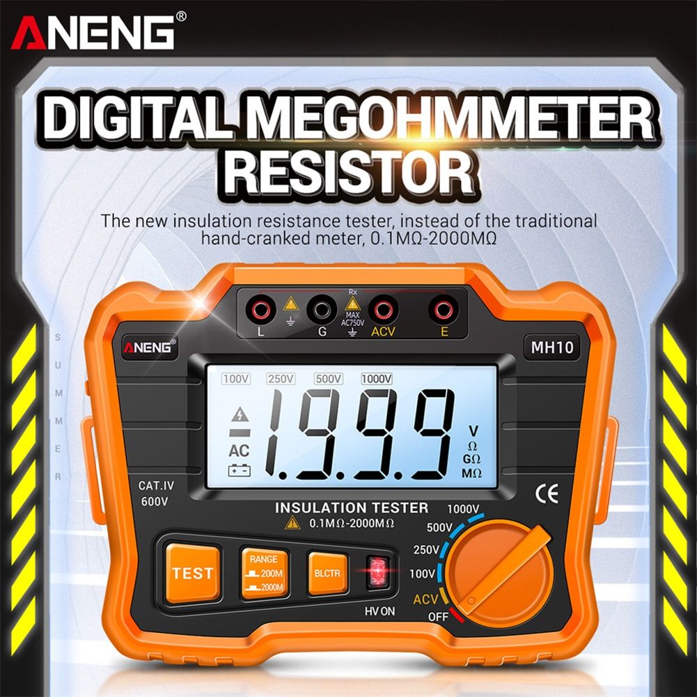 1X ANENG MH10 Digital Megohmmeter Meer Meter Insulation Earth Ground Resistance 100-1000V Voltage Tester Megohmmeter Voltmete