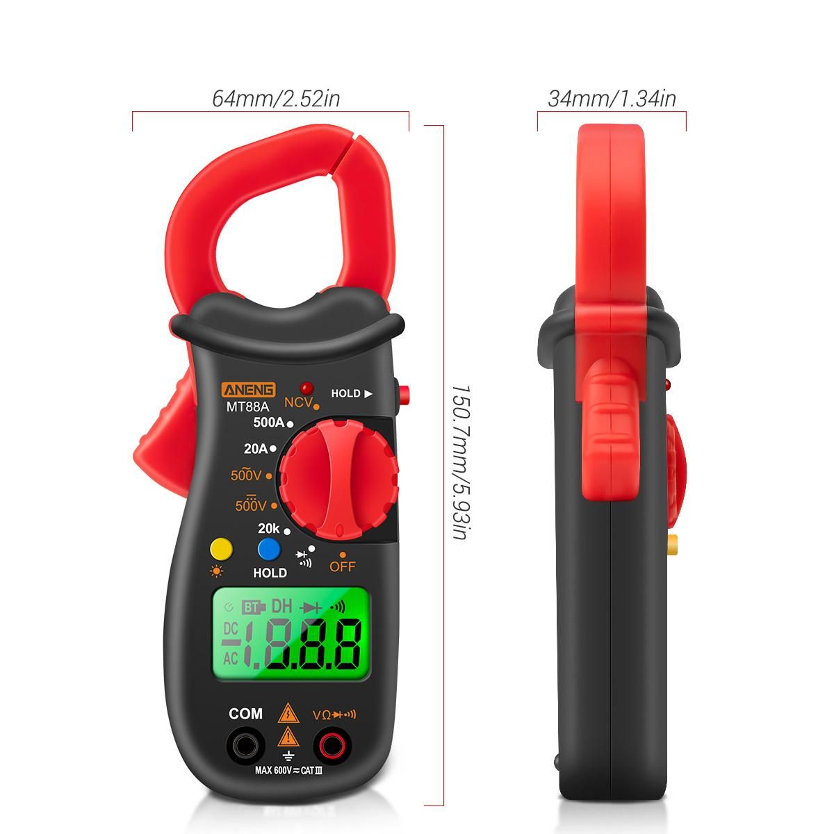 Buy ANENG MT88A Clamp Meter Multimeter LCD Digital Universal Meter 1999 Counts Auto Range Handheld DC/AC Voltage Voltmeter 500A AC Current Ammeter Frequency Capacitance Tester NCV Test Data Hold Green Backlit Screen in Nigeria