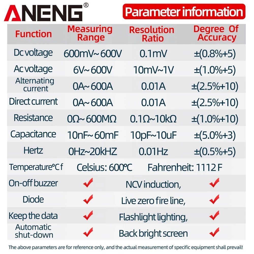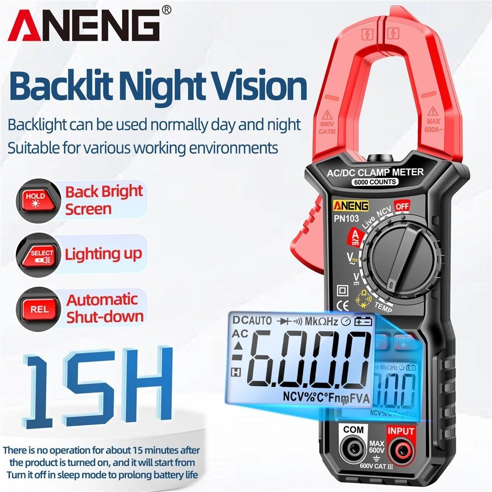 ANENG PN103 AC/DC Current Clamp Meter 6000 Counts True RMS Digital Multimeter 600A Clamp Meter