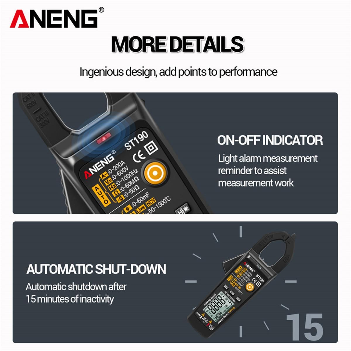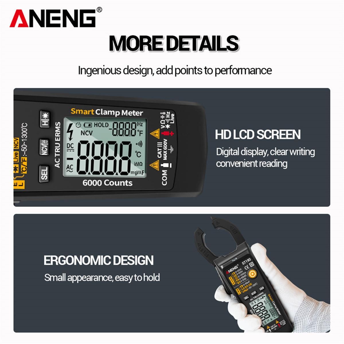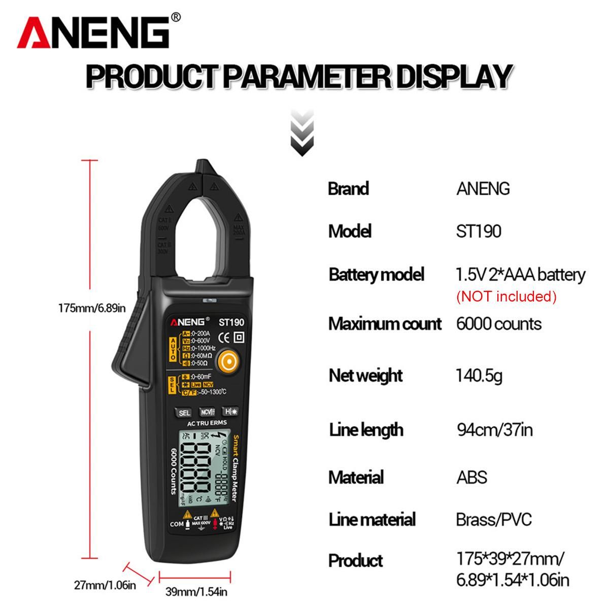 Buy ANENG ST190 Smart Clamp Meter 6000 Counts Auto-ranging Digital Multimeter LCD Screen AC DC Voltage AC Current Detector Pen Temperature Measuring LED Flashlight Multifunction Voltage Meter Continuity Resistance Frequency Testing with Alarm Buzzer in Nigeria