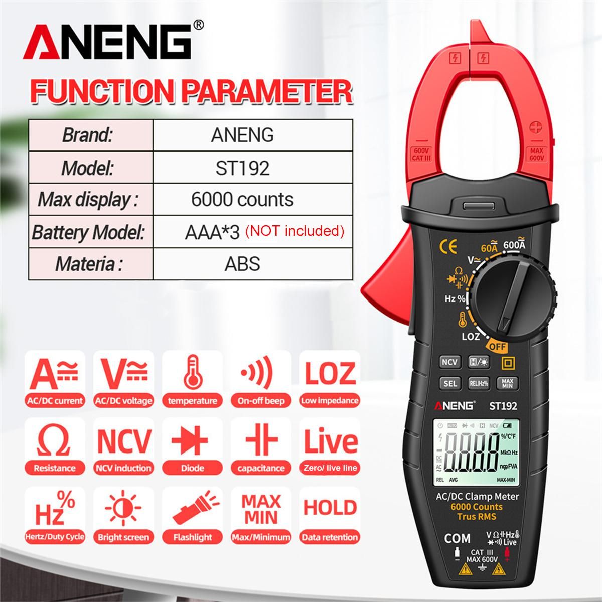 Buy ANENG ST192 600A DC AC Clamp Meter 6000 Counts Auto-ranging Digital Multimeter LCD Screen Voltage Current Detector Pen Temperature Measuring LED Flashlight Multifunction Voltage Meter Continuity Resistance Frequency Testing in Nigeria