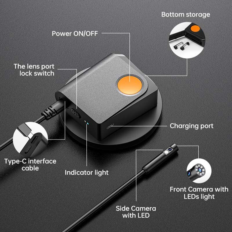 ANESOK W200 Dual Lens 2K Wifi Wireless Endoscope Inspection Camera Borescope Tube for Underwater Vent Pipe Car Repair