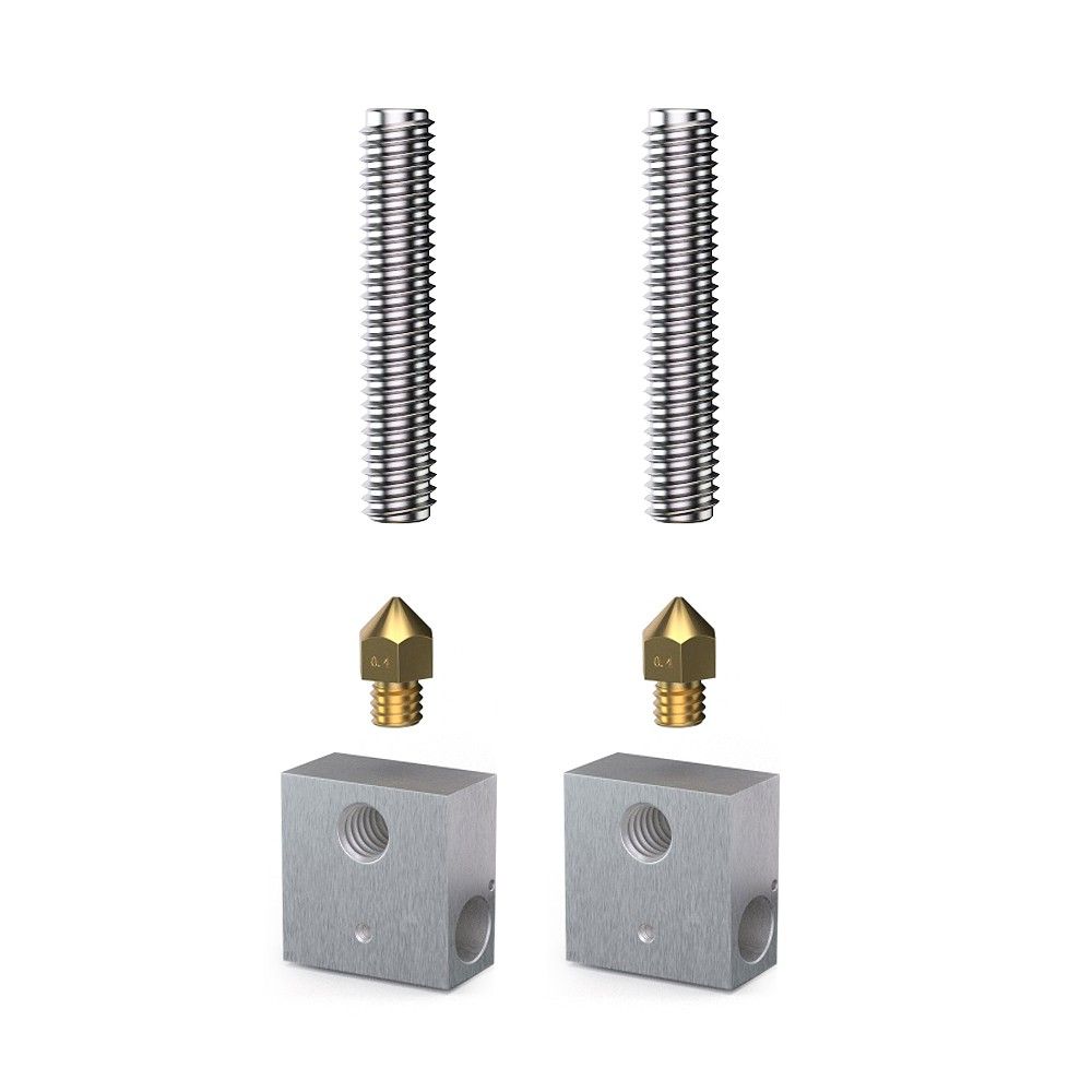 The accessory kit comes with 2 * nozzle extruders + 2 * heater blocks + 2 * throat tubes, enough for use.