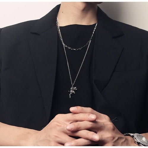 Buy Angel Pendant Double Layered Necklace - Silver in Nigeria