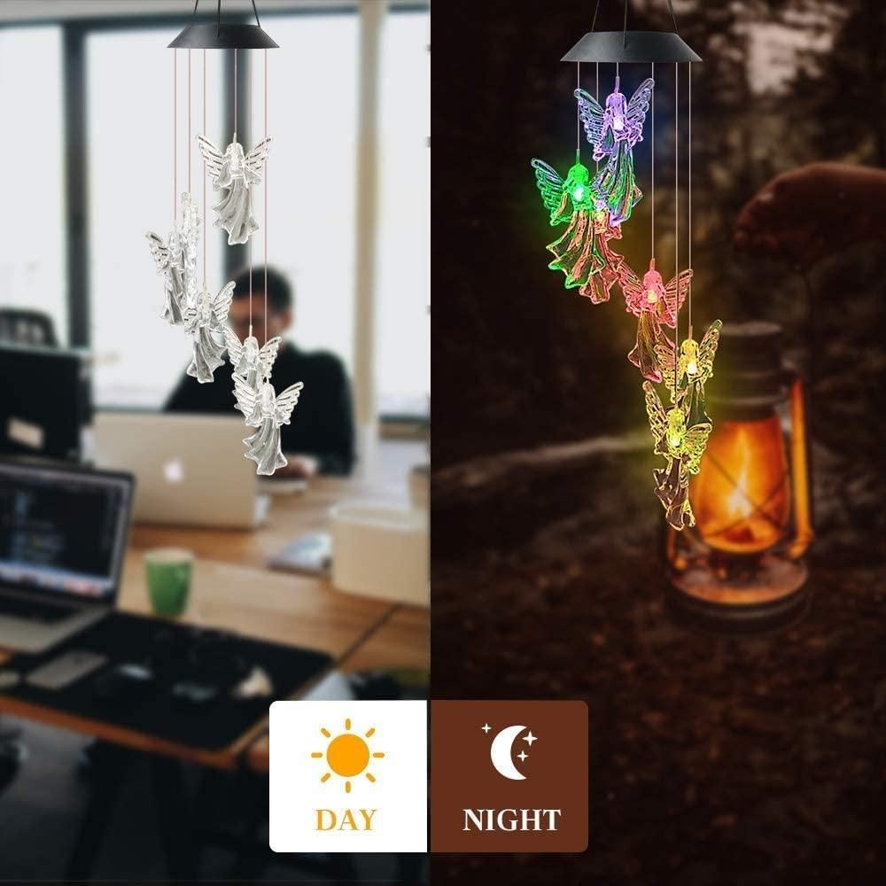 LIGHT SENSOR The light will be automatically lit at night and in the dark, with a color-changing LED bulb, and the change from one color to another is calm and gentle. It is both energy-saving and environmentally friendly. After fully , the light of the wind chime can last for 6-8 hours.