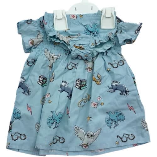 white & Pink Floral gown with pinks & blues flower design. Sleeveless dress with a bow and bottom of dress puffs out too, the dress has a baby pant inside. This dress is perfect for newborn to 12mnt.