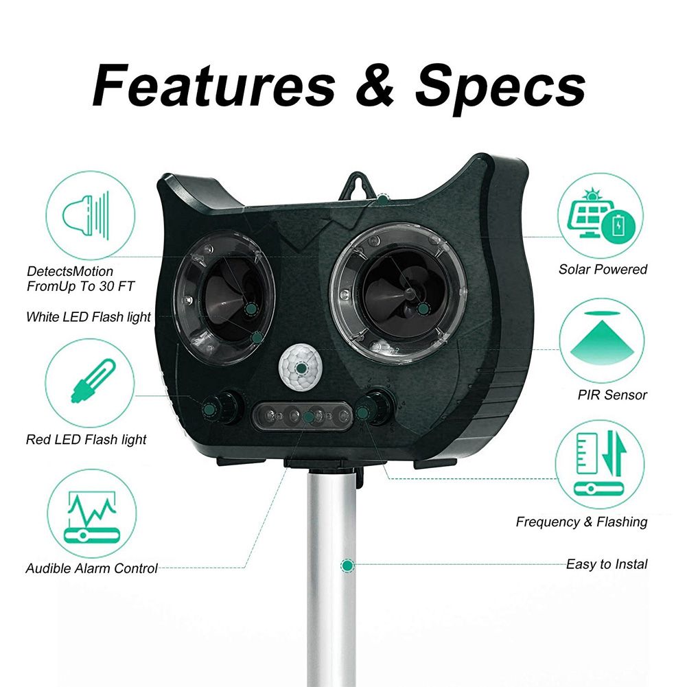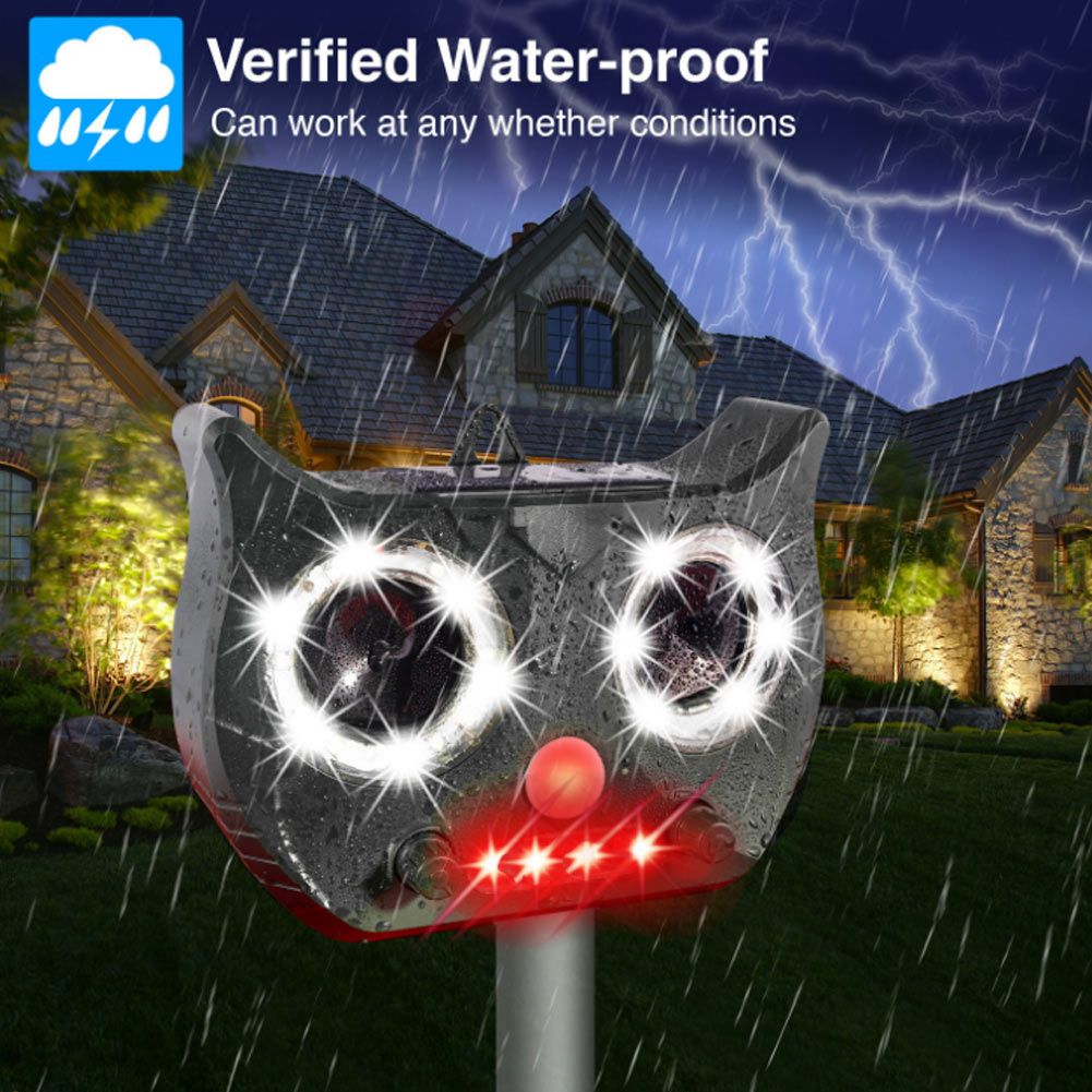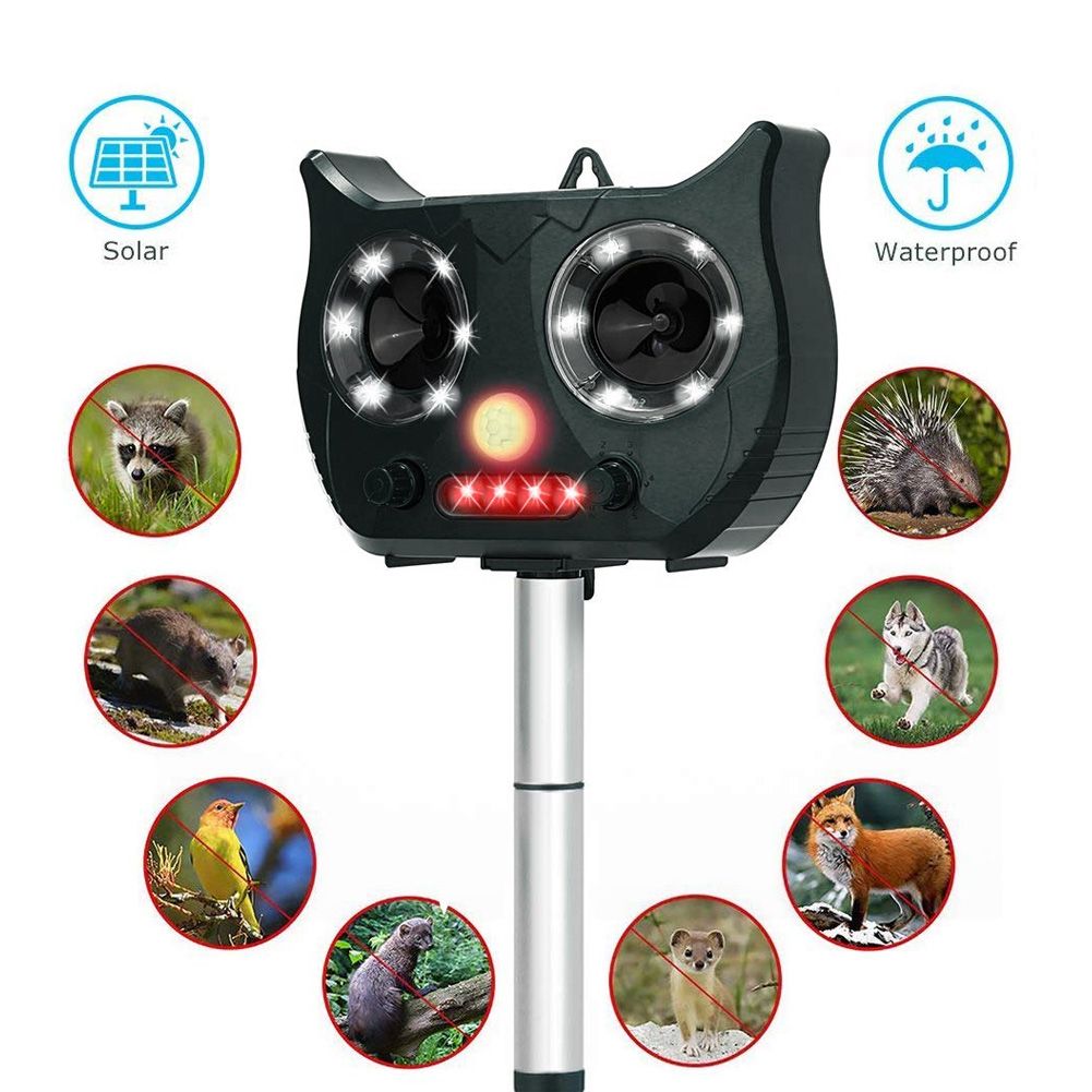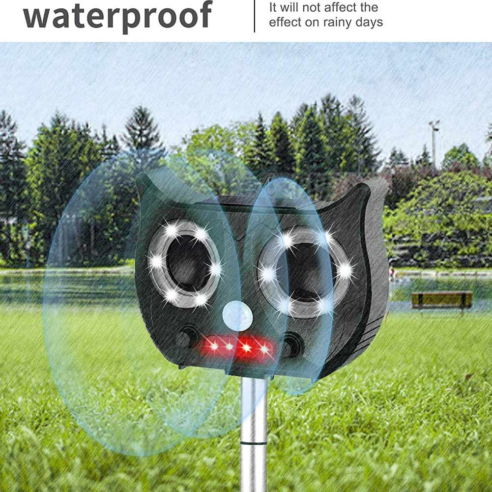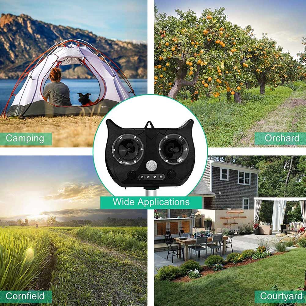 Portable amp; Easy use: You can simply push the animal repeller into the ground or hang it on a wall. Perfect for yard, patio, driveways, garage, attics, porches, boats, gardens, farms, ponds, etc. Even it is portable to take into your camping to be away from stray dogs, stray cats and pests harassment.