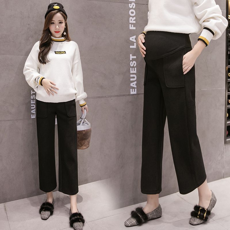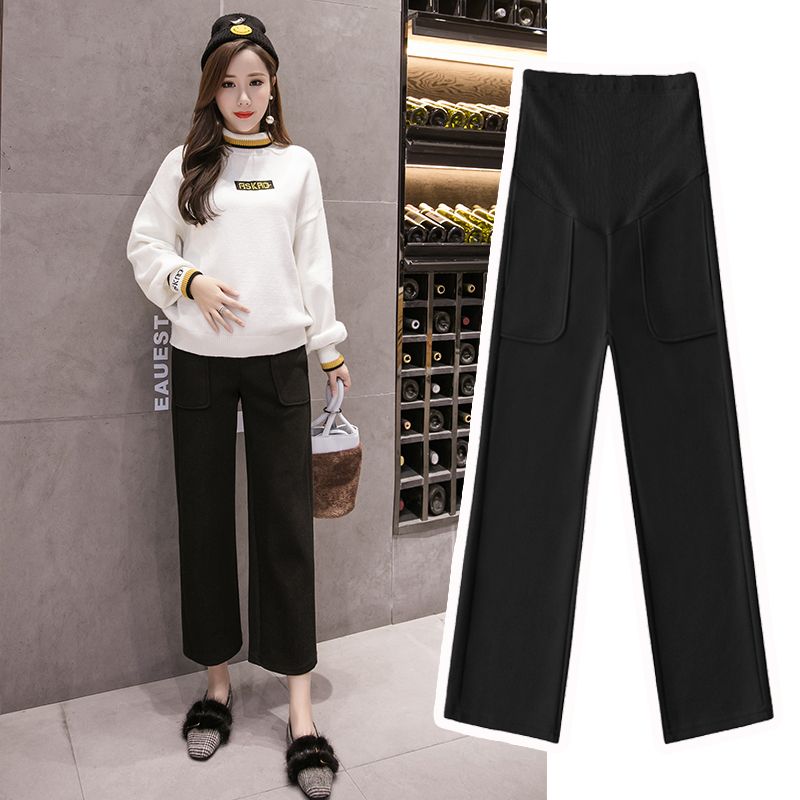 1X Ankle-length maternity wide-leed trousers fashion loose pregnancy straight leisure pregnant woman abdomen trousers