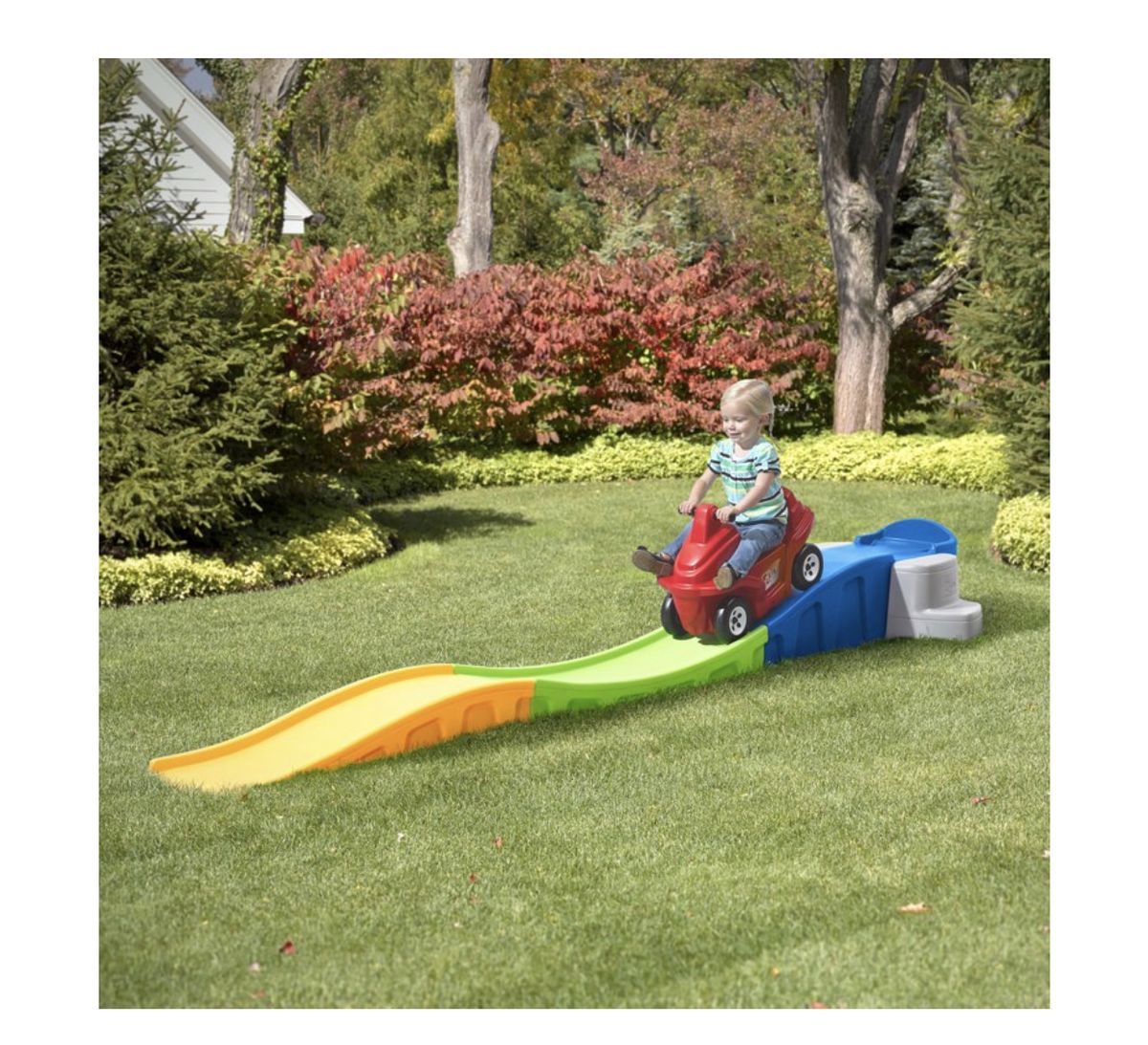 This colorful children's roller coaster by Step2 will give kids all the thrills of their very own amusement park. Youngsters will develop balance, coordination, and gross motor skills by pushing the coaster car back to the top! This kid's coaster includes a fully assembled ATV-style coaster car. This sturdy, colorful riding toy will make a great addition to any indoor playroom or backyard.