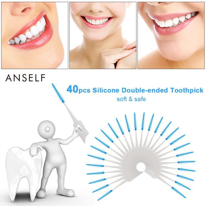 Anself 40pcs Double-ended Toothpick Soft Silicone Tooth