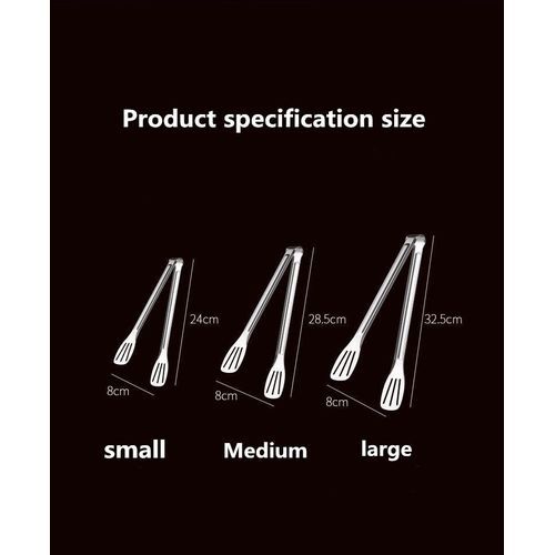 Size: 240*80mm (9in)/285*80mm (12in)/325*80mm(14in) Color: silver Material: stainless steel Package list: 1/2/3 x food tongs Features: Premium quality: It is made from good quality stainless steel, which is non-stick, corrosion resistant and odor resistant. Non-slip: Non-slip surface design offers you better control on food. Function: Keep your hands away from the heat and mess. Application: Perfect for cooking, grilling and serving different foods, such as, meat, vegetable, fruits, bread and more. Ergonomic handle: Light weight, easy to handle, eliminating any risk of burning your hands. Multipurpose: Basic kitchen utensil, perfect for indoor or outdoor use, great for kitchen tasks, grilling corn, flipping burgers/fish, cutting roast meat, or used as BBQ turner and more. Easy to clean: You can rinse with water. Easy to carry: Simply hang on wall after using or put in the drawer to save space. Notes: 1. Please allowed 1-3mm differences due to manual measurement, thank you for your understanding! 2. Due to the difference between different monitors, please understand that the picture may not reflect the actual color of the