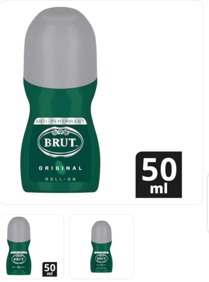- Brut Roll-On Deodorant 50 ml; A deodorant for Men; 24 hour perspirant protection in the iconic BRUT fragrance, available in both aerosol and roll-on.; The iconic BRUT fragrance; 50ml