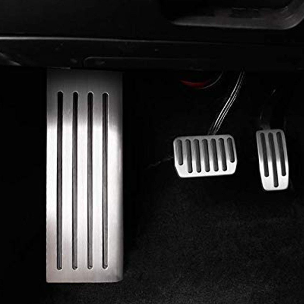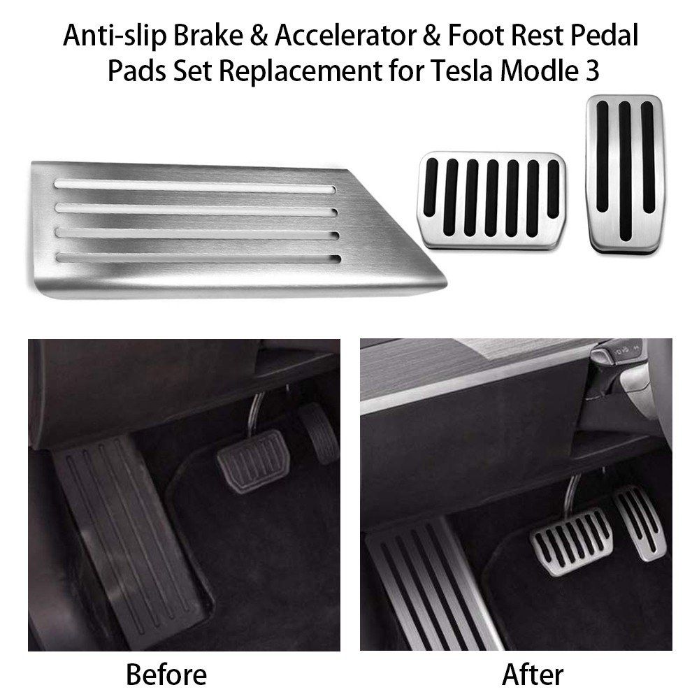 【Performance amp; Design】Fashion design enhances the style and appearance of your standard Model 3 with the Foot Pedal Pads. Non-slip surface design, safe for driving and strengthen the friction coefficient. The rubber at the back side can increase friction to provide you safer driving.