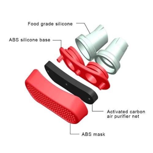 Filter air - The snore-stopper device does not contain bisphenol-A. It is odorless and safe. The activated carbon filter built into the ore plug accessory can effectively filter harmful particles from the air, absorb more oxygen safely, purify the air by breathing, and protect your health during sleep.