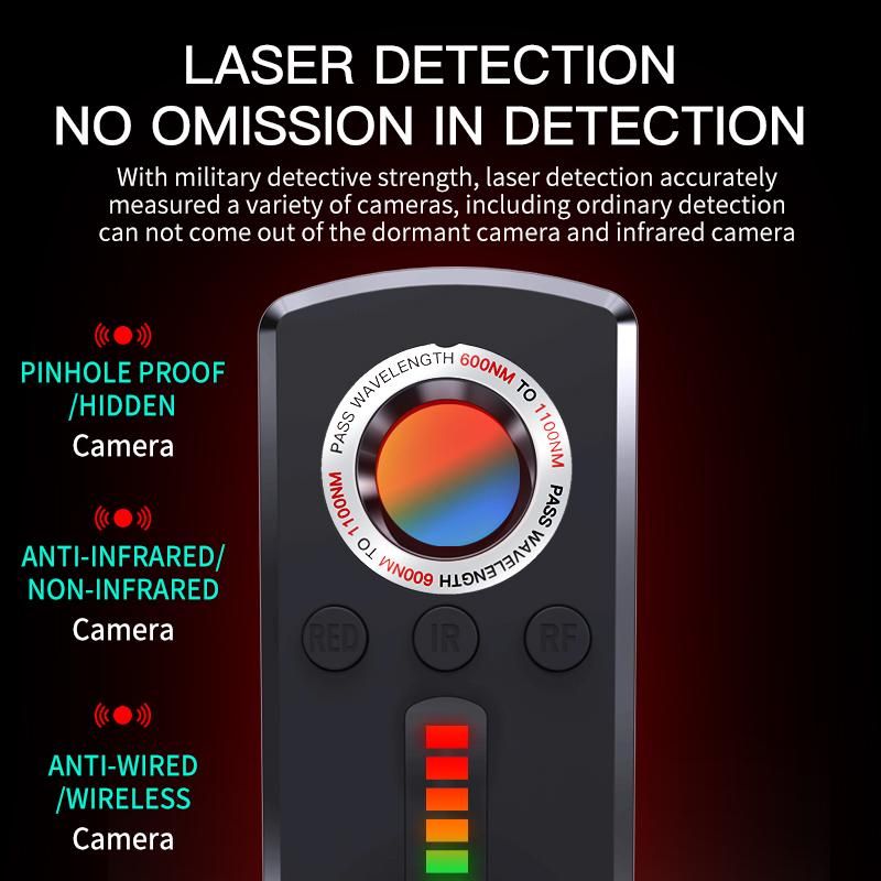 We hold the device, the light-sensing head is facing the front, walking around the room, if this time the device beeping, indicating that there is infrared transmitting equipment in front. Note that the device sensing angle is 30 degrees, if too far or not directly in front, is not received infrared.(This function needs to be used in a dark environment, because there are infrared rays in the daytime environment, such as sunlight, and the device will also issue an alarm, so using it in a dark environment can ensure the accuracy of infrared detection)