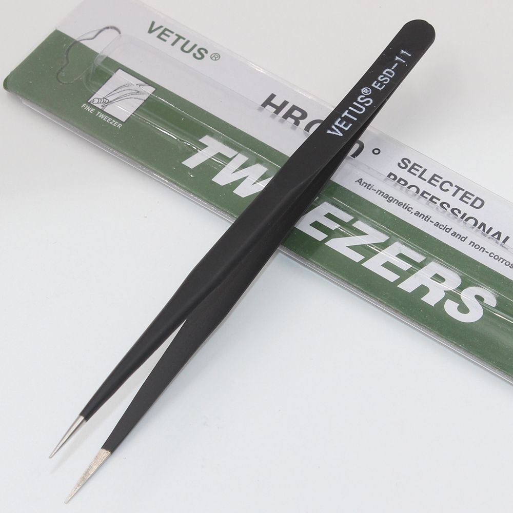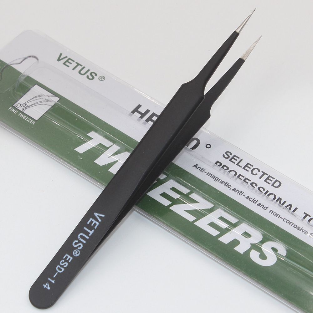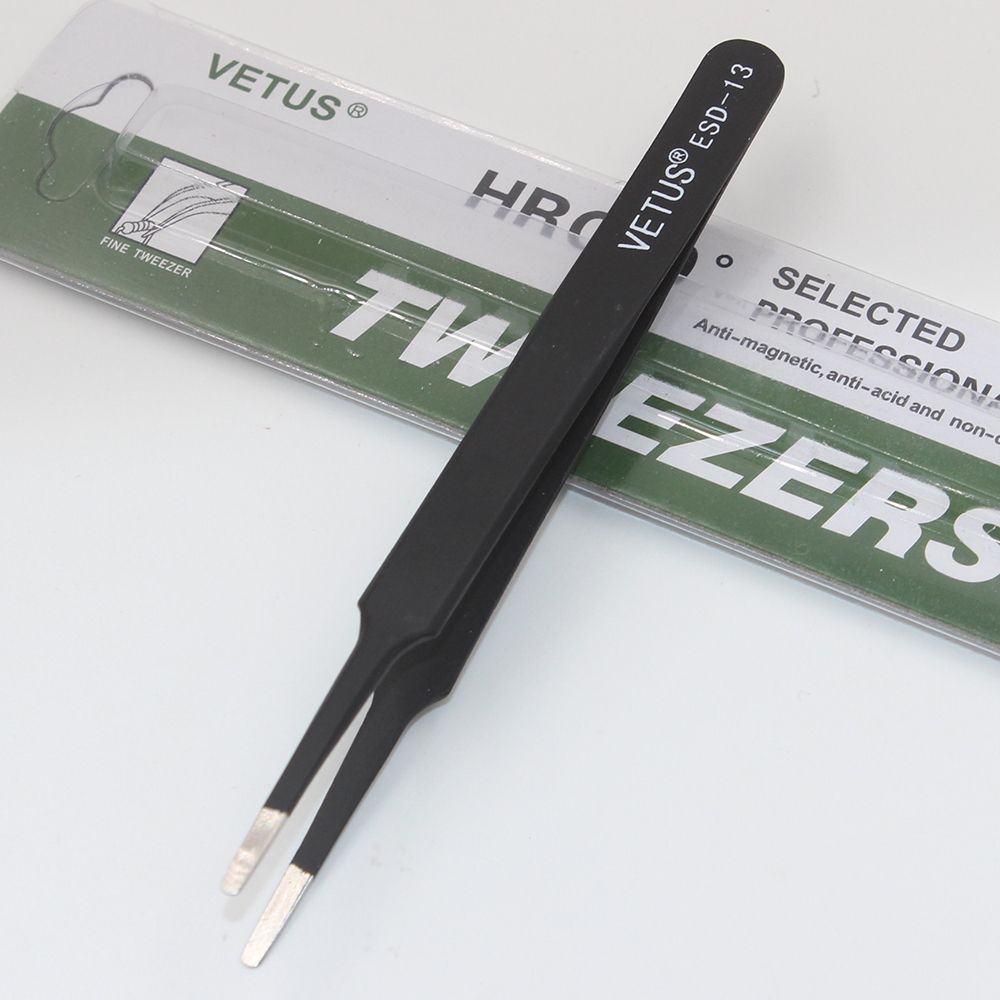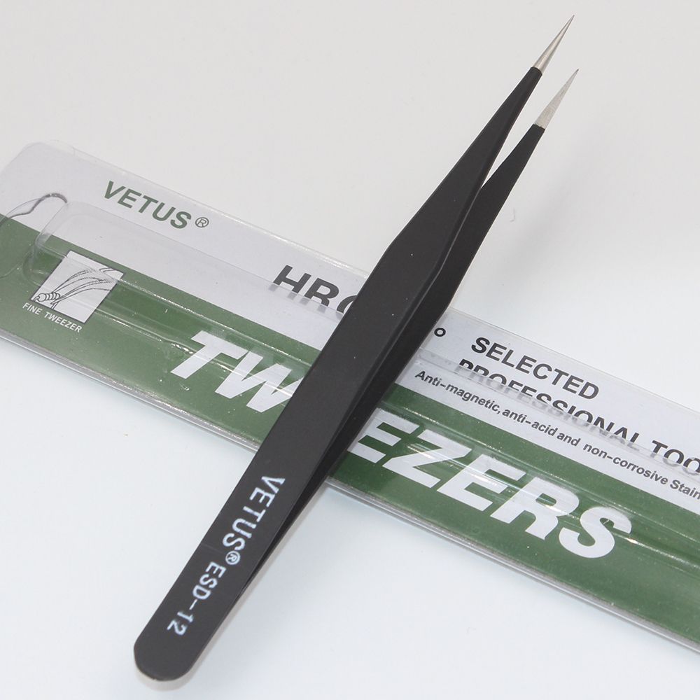 Good Quality Anti-static ESD 10-15 Tweezers Set For Soldering Station Welding Aist Tools 6pcs/lot Brand:OEM Model:ESD 10~15 ESD-10 (Standard): for soldering integrated circuit , and install or replace components. ESD-11 (large): This tweezers nozzle length is longer than the standard for sophisticated electronic components to operate. ESD-12 (high elasticity): This tweezers forceps more powerful than the standard nozzle, but also in the folder with strong tweezers will not bend circuit boards, components will not fall. ESD-13 (round): This round to avoid damage to components for extracting the circuit ; ESD-14 (superfine): This special tapered tweezers Tsui, Tsui winger Lee, integrated circuit for high-density component in the operation. ESD-15 (Eagle Tsui): This tweezers Tsui bent 450 °, for extraction of components in a narrow place. Features: 1, stainle steel material 2, the magnetic anti-acid 3, tip hardne particularly good, not easily deformed, H40 or more, long-term use, increased life expectancy 4, in use, feel relaxed and able to adapt to long-term work 5, the appearance of flowing lines, fine proceing 6, fine tip, long contact surfaces, can adapt to very fine products in 0.01mm object operations