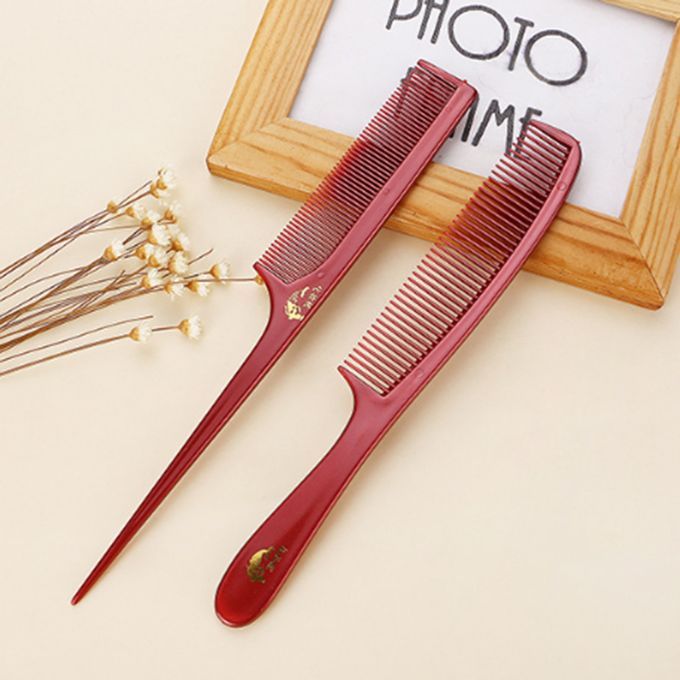 The comb handle has a tapered tail that allows for sectioning, separating and partings.